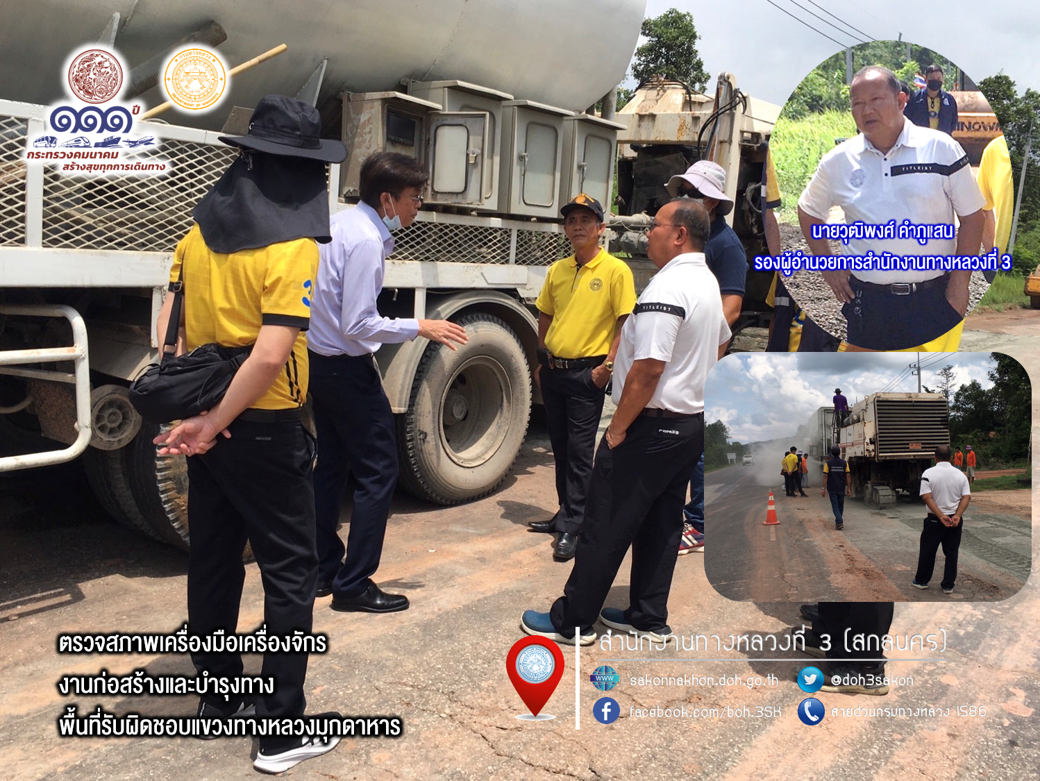 นายวุฒิพงศ์ คำภูแสน รองผู้อำนวยการสำนักงานทางหลวงที่ 3 ประธานกรรมการตรวจรับพัสดุ พร้อมด้วยคณะกรรมการตรวจรับพัสดุ ลงพื้นที่ตรวจสภาพเครื่องมือเครื่องจักรงานก่อสร้างและบำรุงทาง ของ บริษัทจำกัด ศิรินิยม(2525)
