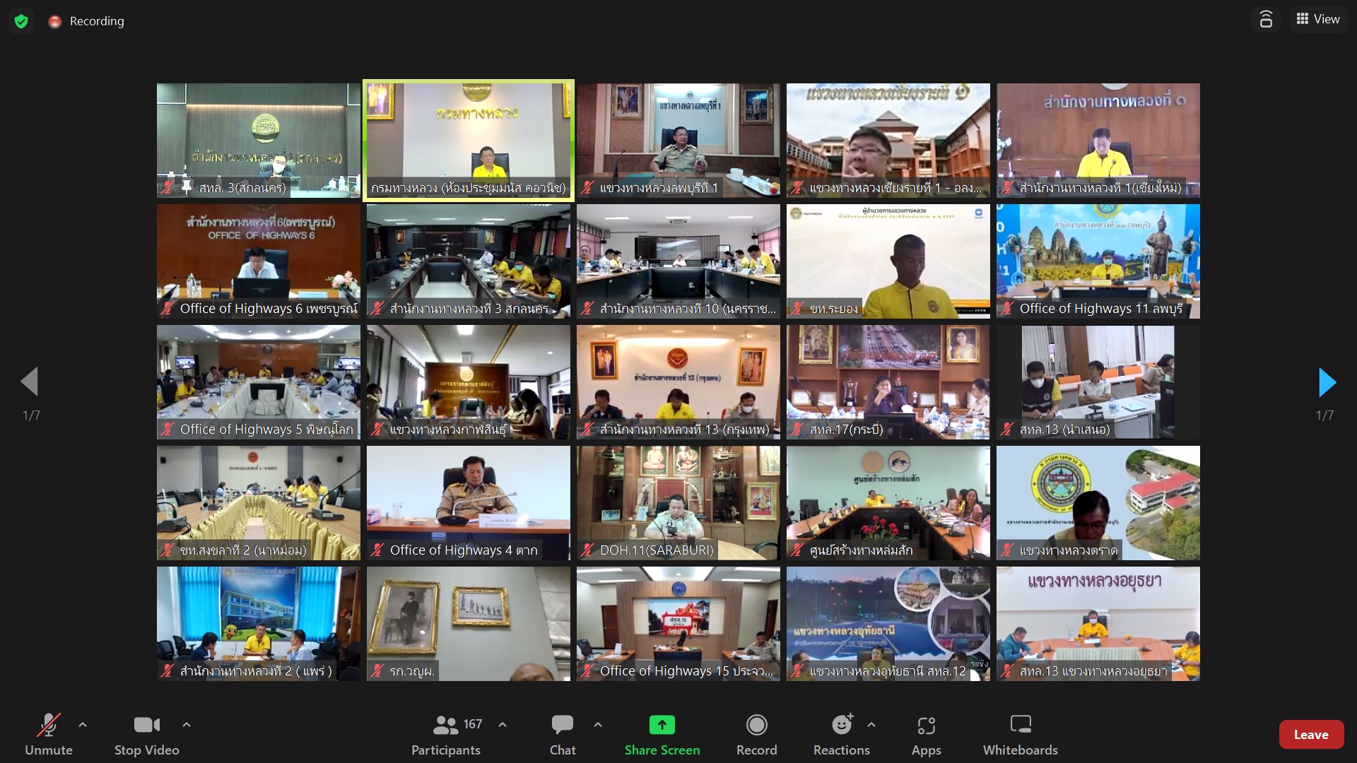 สำนักงานทางหลวงที่ 3 (สกลนคร) นายพัลลภ จันทร์งามปภากูล ผู้อำนวยการสำนักงานทางหลวงที่ 3พร้อมด้วย นายประวัติ เสวตวงษ์ รองผู้อำนวยการสำนักงานทางหลวงที่ 3ตำแหน่งที่ 2 นายชินนพัทธ์ มุลทาทอง ผู้อำนวยการส่วนแผนงานนายหนูกาญ เจริญไชย ผู้อำนวยการส่วนกฎหมายแลกรรมสิทธิ์ที่ดิน นายอำนาจ สาไชยันต์ ผู้อำนวยการส่วนเทคโนโลยีสารสนเทศ นางรุ่งดาว ชมภูวิเศษ หัวหน้างานการเงินและบัญชี นายผดุง ศรีโคตา วิศวกรโยธาชำนาญการ และนายธนากรณ์ ติยะบุตร วิศวกรโยธาปฏิบัติการ ร่วมประชุมเร่งรัดติดตามผลการดำเนินงานและการเบิกจ่ายเงินงบประมาณประจำปี พ.ศ.2566 ครั้งที่ 2/2566 ผ่านระบบ Zoom Cloud Meeting ณ ห้องประชุมทวีพัฒน์ ตินะมาส อาคารหลังใหม่ ในการประชุมครั้งนี้มีหน่วยงานสังกัดกรมทางหลวง ทั้ง 18 สำนักงานทางหลวง เข้าร่วมประชุมผ่านระบบ Zoom Cloud Meeting