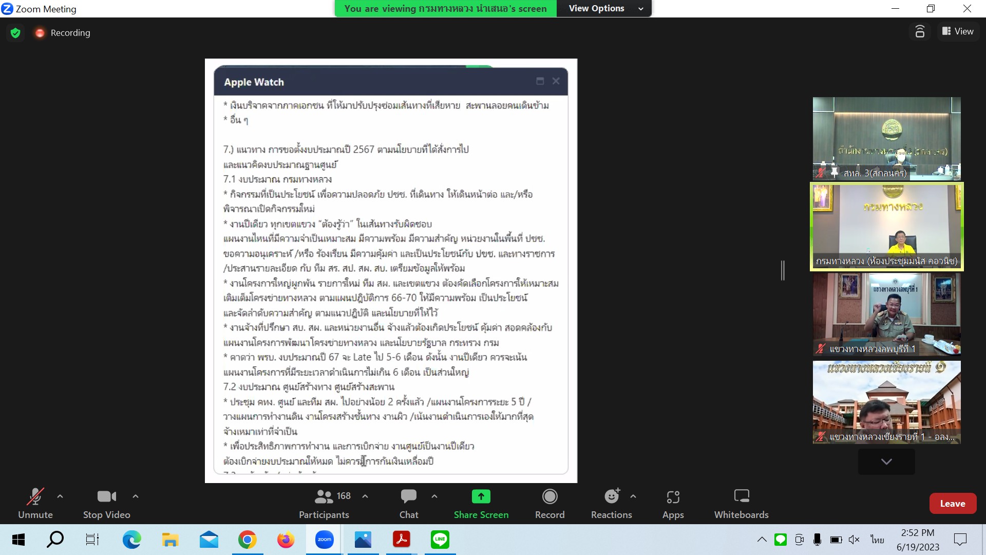 นายสราวุธ ทรงศิวิไล อธิบดีกรมทางหลวง เป็นประธาน ประชุมเร่งรัดติดตามผลการดำเนินงานและการเบิกจ่ายเงินงบประมาณประจำปี พ.ศ.2566 ครั้งที่ 2/2566 โดยผ่านระบบ Zoom Cloud Meeting จากห้องประชุมมนัส คอวนิช กรมทางหลวง