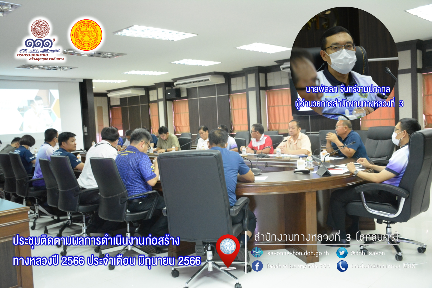 นายพัลลภ จันทร์งามปภากูล ผู้อำนวยการสำนักงานทางหลวงที่ 3 เป็นประธาน ประชุมติดตามผลการดำเนินงานก่อสร้างทางหลวงปี 2566 ประจำเดือน มิถุนายน 2566