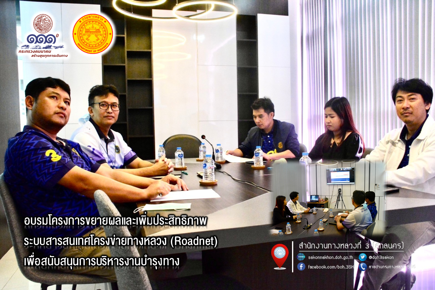 นายอำนาจ สาไชยันต์ ผู้อำนวยการส่วนเทคโนโลยีสารสนเทศ พร้อมด้วยนายผดุง ศรีโคตา วิศวกรโยธาชำนาญการ นายกษิดิศ สินโน วิศวกรโยธาปฏิบัติการ และเจ้าหน้าที่ที่เกี่ยวข้องส่วนเทคโนโลยีสารสนเทศ เข้ารับการอบรมโครงการขยายผลและเพิ่มประสิทธิภาพระบบสารสนเทศโครงข่ายทางหลวง (Roadnet) เพื่อสนับสนุนการบริหารงานบำรุงทาง ผ่านระบบออนไลน์ Zoom Meeting ณ ห้องประชุมชั้น 2 สำนักงานทางหลวงที่ 3 (สกลนคร) อาคารหลังใหม่