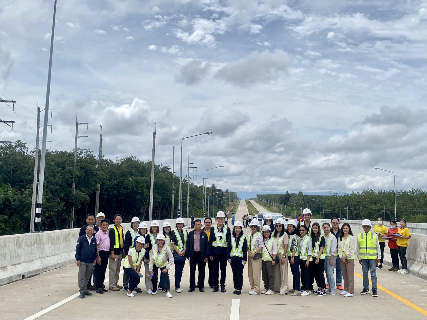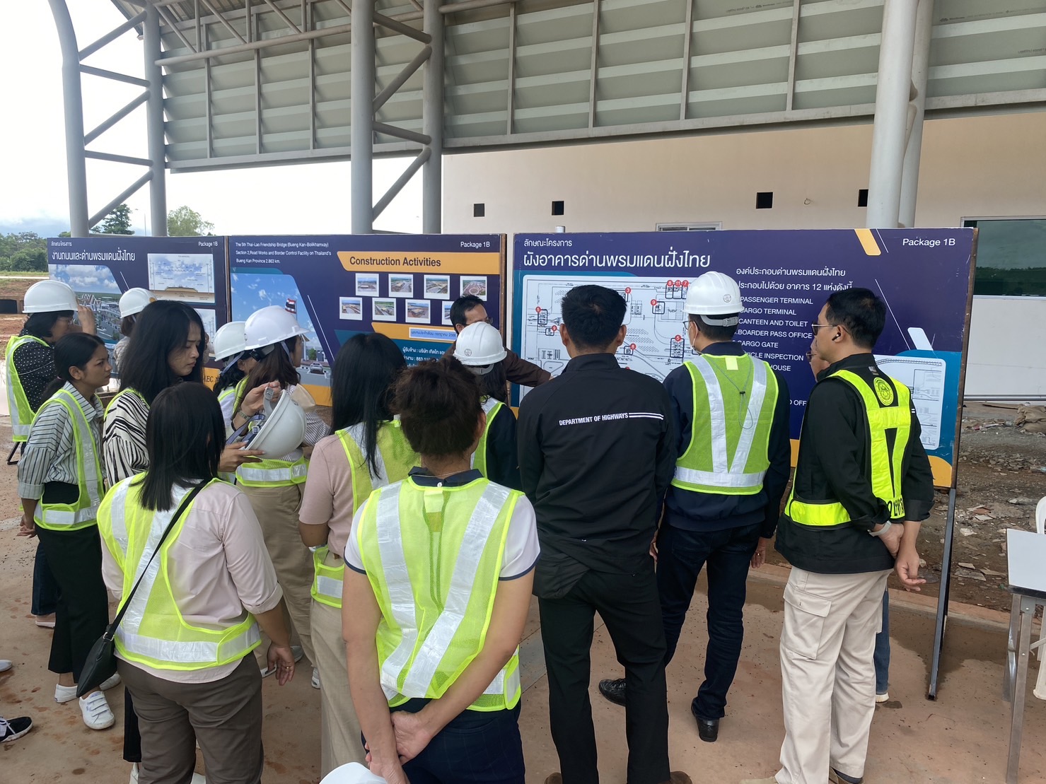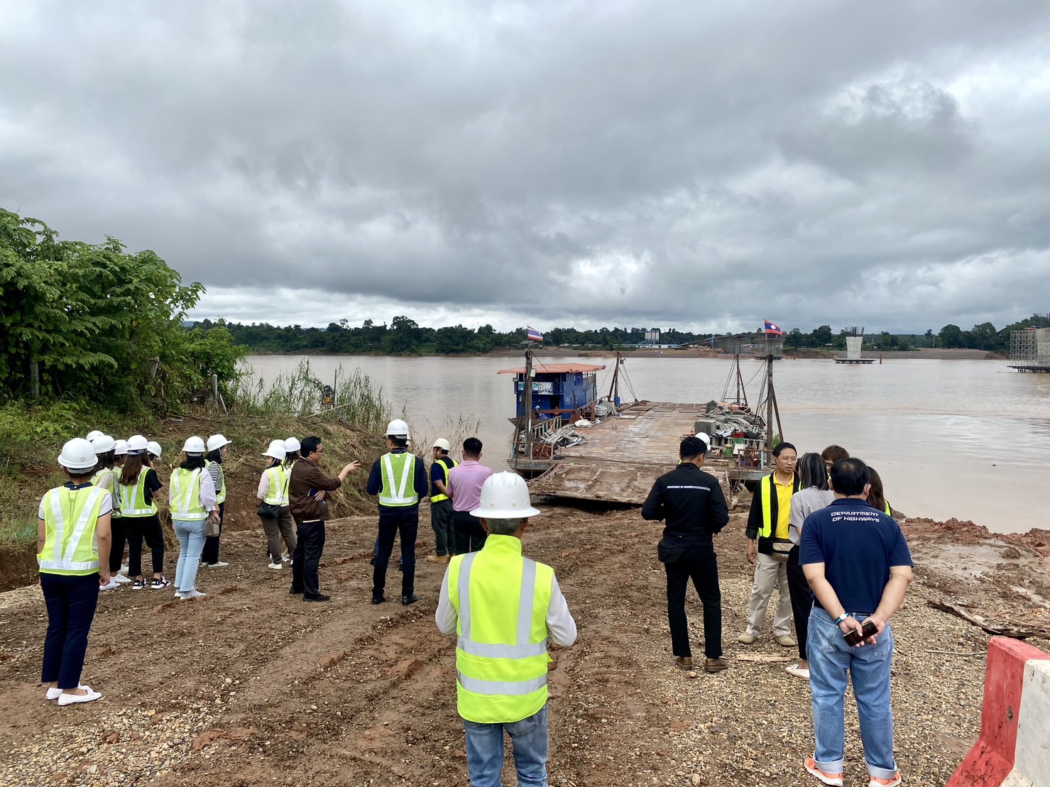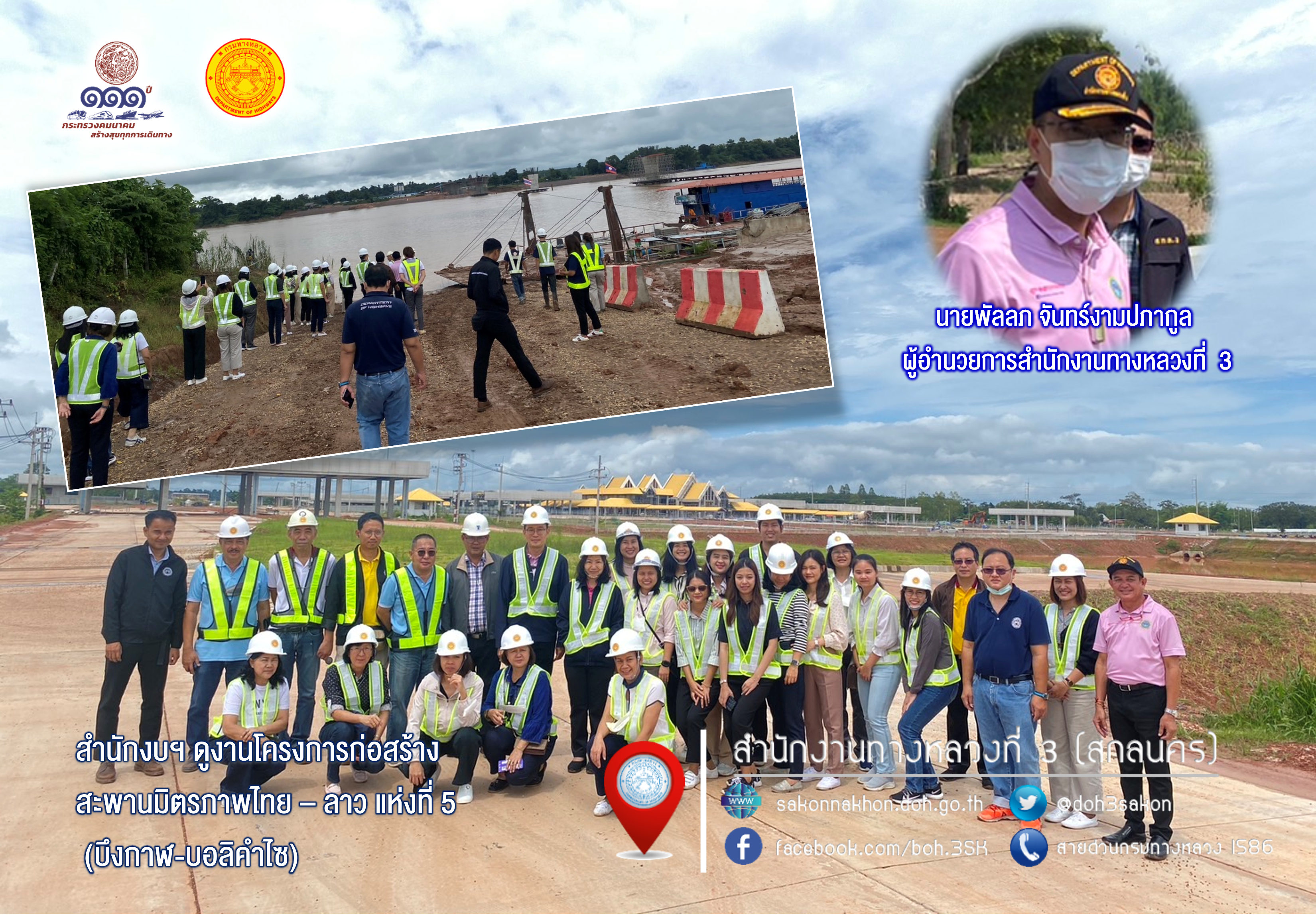 นายพัลลภ จันทร์งามปภากูล ผู้อำนวยการสำนักงานทางหลวงที่ 3 พร้อมด้วยนายช่างโครงการฯ นำคณะจากสำนักงบประมาณ ลงพื้นที่ดูงานโครงการก่อสร้างของกรมทางหลวง **โครงการก่อสร้างสะพานมิตรภาพไทย – ลาวแห่งที่ 5 (บึงกาฬ-บอลิคำไซ)**ทั้ง 3 ตอน