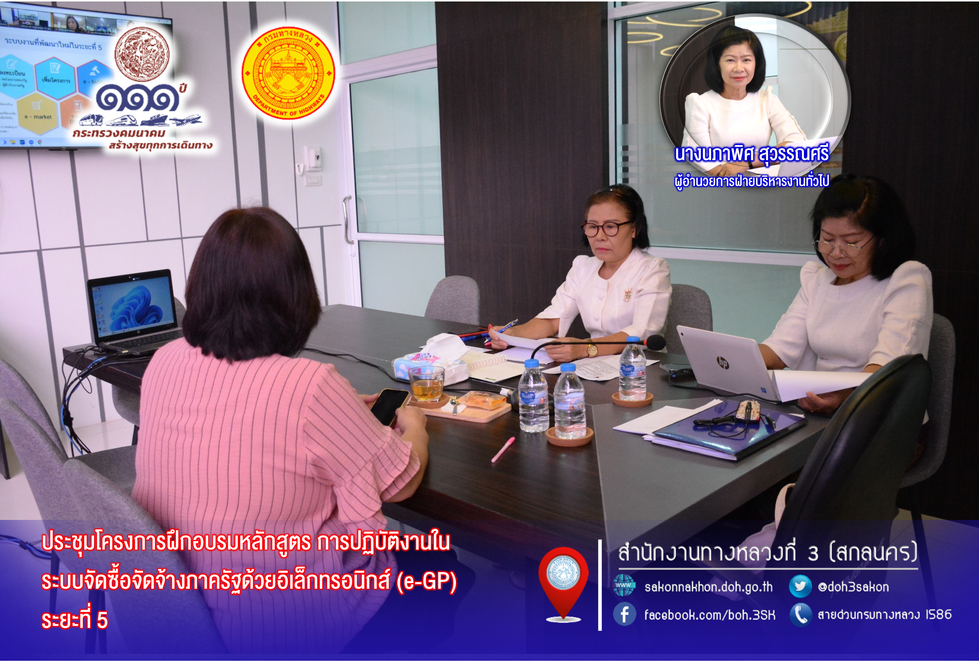 นางนภาพิศ สุวรรณศรี ผู้อำนวยการฝ่ายบริหารงานทั่วไป พร้อมด้วย นางสำนวน ทำเนาว์ หัวหน้างานพัสดุและสัญญา และนางจีรวรรณ วงษ์อุ่น เจ้าพนักงานพัสดุชำนาญงานเข้าร่วมประชุมโครงการฝึกอบรมหลักสูตร การปฏิบัติงานในระบบจัดซื้อจัดจ้างภาครัฐด้วยอิเล็กทรอนิกส์(e-GP) ระยะที่ 5 โดยผ่านระบบออนไลน์ Zoom Video Conference ณ ห้องประชุมชั้น 2 สำนักงานทางหลวงที่ 3 (สกลนคร) อาคารหลังใหม่ จัดโดยกองฝึกอบรมกรมทางหลวง