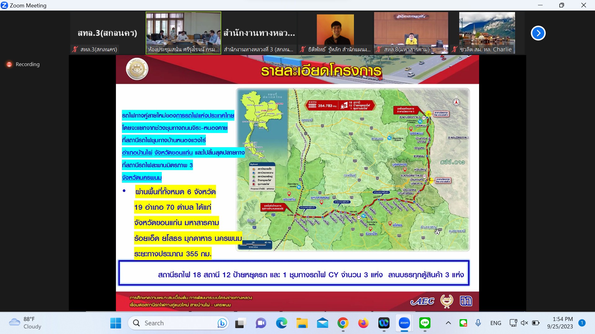 ประชุมพิจารณารายงานความก้าวหน้า ฉบับที่ 2 (Progress Report 2) โครงข่ายทางหลวงเชื่อมสถานีทางคู่ขนาน สายรถไฟบ้านไผ่ – นครพนม