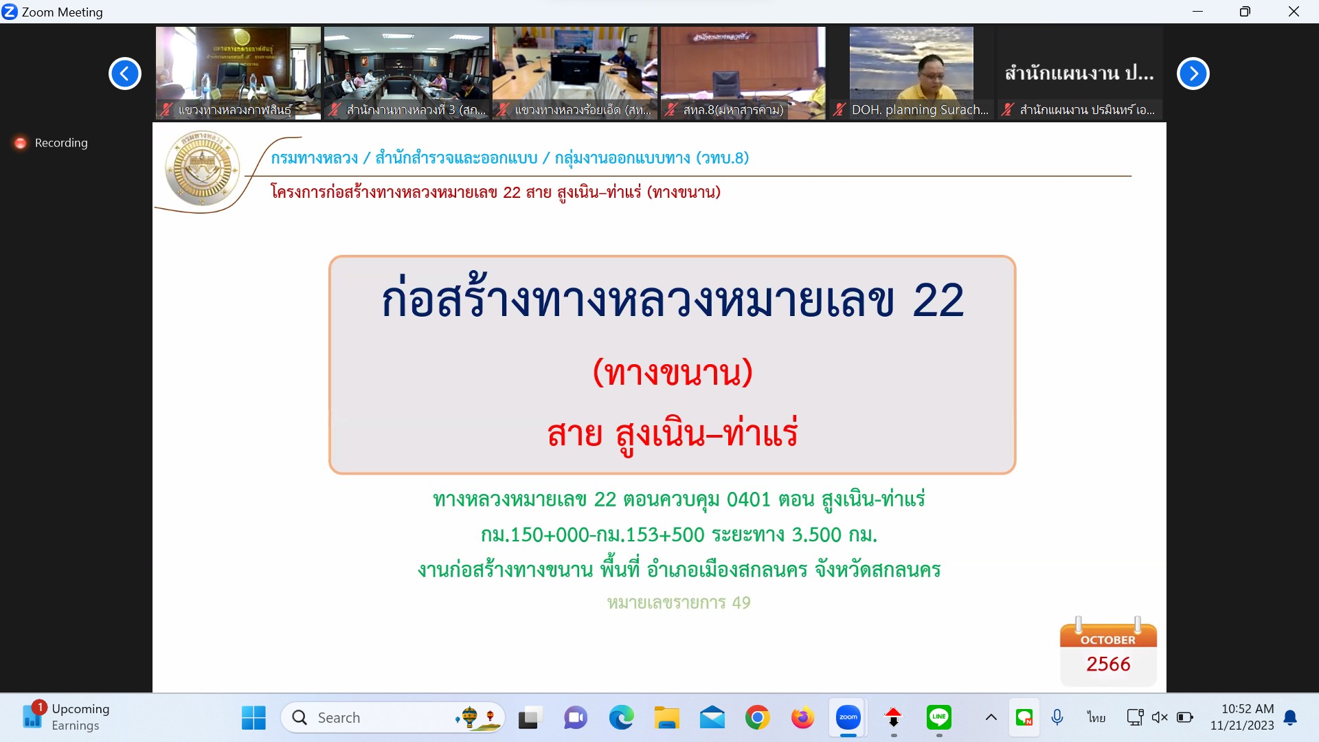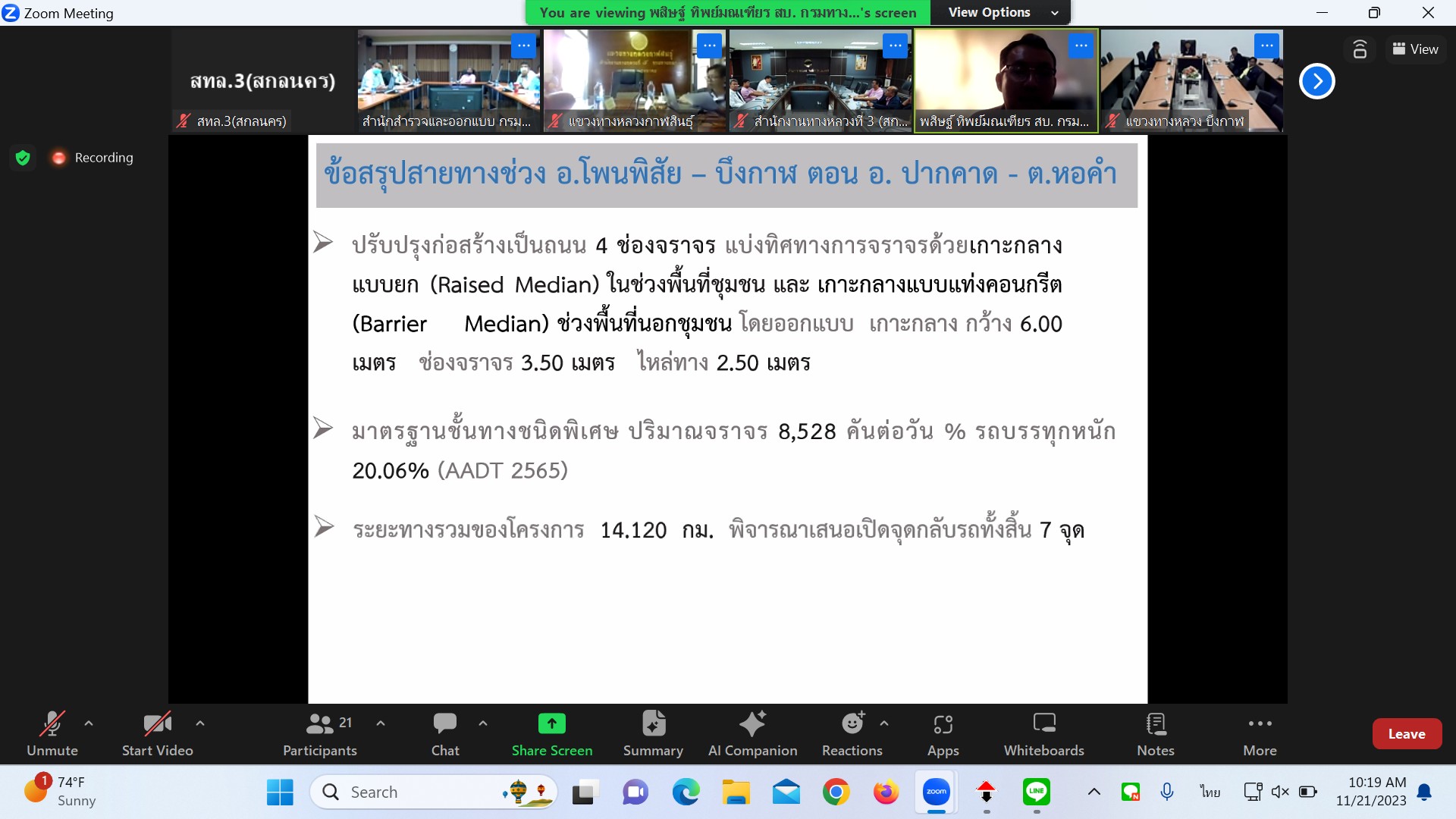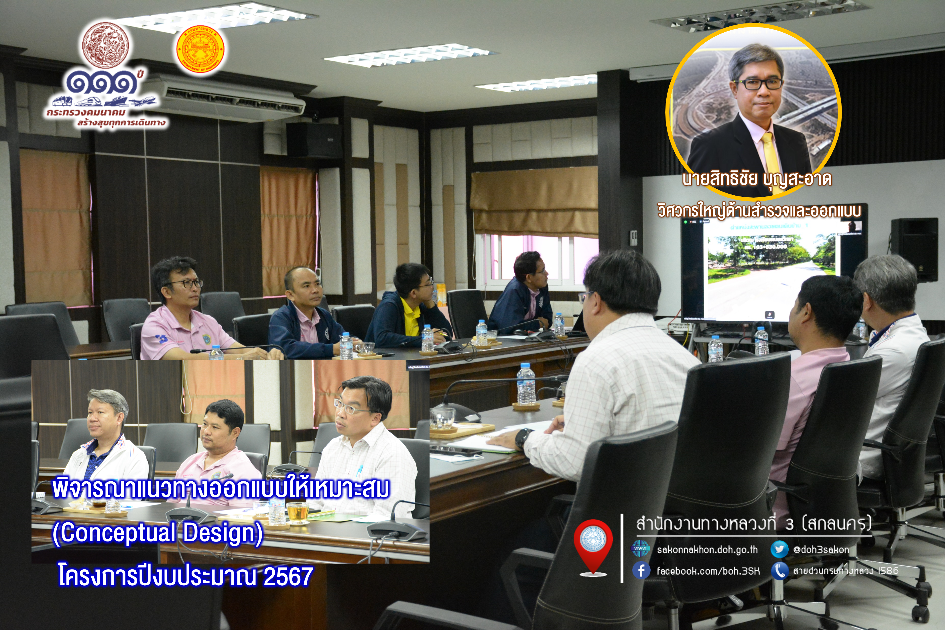 สำนักงานทางหลวงที่ 3 (สกลนคร) นำโดยนายพงษ์ศักดิ์ อาจลา ผู้อำนวยการส่วนสำรวจและออกแบบ พร้อมด้วย นายผดุง ศรีโคตา วิศวกรโยธาชำนาญการ นายธนากรณ์ ติยะบุตร วิศวกรโยธาปฏิบัติการ นายกษิดิศ สินโน วิศวกรโยธาปฏิบัติการ นายธนพนธ์ กิตติธรรม นายช่างโยธาชำนาญงาน และนายจรัล เสนาคำ นายช่างโยธาชำนาญงาน เข้าร่วมประชุมพิจารณาแนวทางออกแบบให้เหมาะสม (Conceptual Design) โครงการปีงบประมาณ 2567 พร้อมเสนอแนวคิดในการออบแบบเบื้องต้น