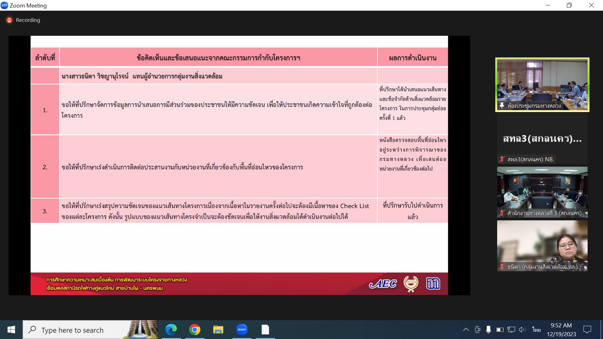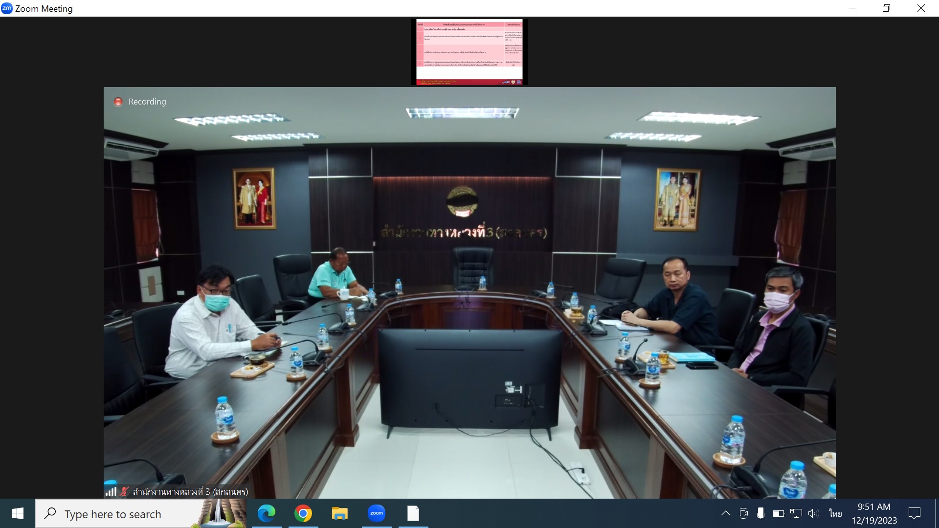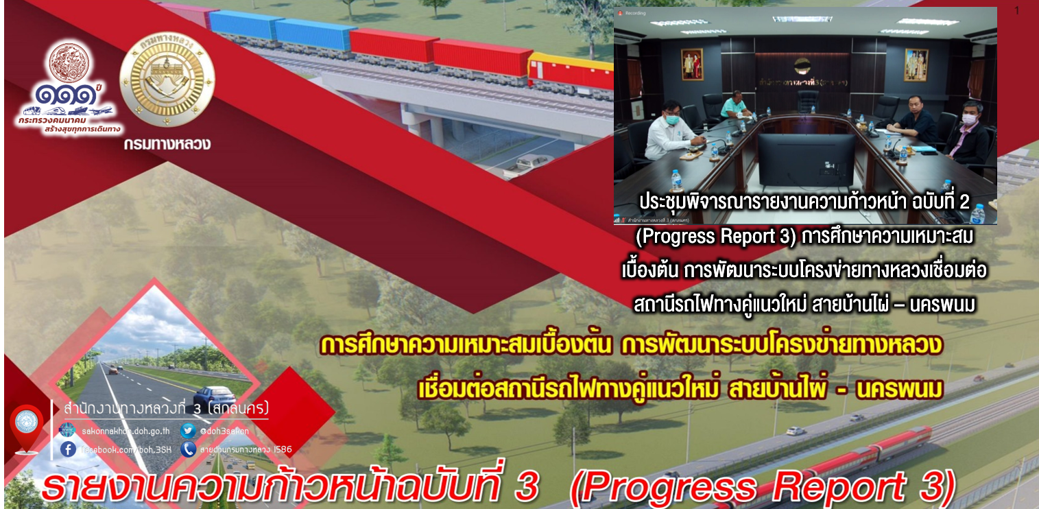 พร้อมด้วย นายเรืองฤทธิ์ ทิพย์วังเมฆ ผู้อำนวยการส่วนตรวจสอบและวิเคราะห์ทางวิศวกรรม นายพงษ์ศักดิ์ อาจลา ผู้อำนวยการส่วนสำรวจและออกแบบ และนายชินพัทธ์ มุลทาทอง ผู้อำนวยการส่วนแผนงาน เข้าร่วมประชุมพิจารณารายงานความก้าวหน้า ฉบับที่ 3 (Progress Report 3) การศึกษาความเหมาะสมเบื้องต้น การพัฒนาระบบโครงข่ายทางหลวงเชื่อมต่อสถานีรถไฟทางคู่แนวใหม่ สายบ้านไผ่ - นครพนม ผ่านระบบออนไลน์ Zoom Cloud Meeting ณ ห้องประชุมทวีพัฒน์ ตินะมาส ชั้น 3 อาคารหลังใหม่ จัดโดย สำนักแผนงาน กลุ่มงานวางแผน กรมทางหลวง