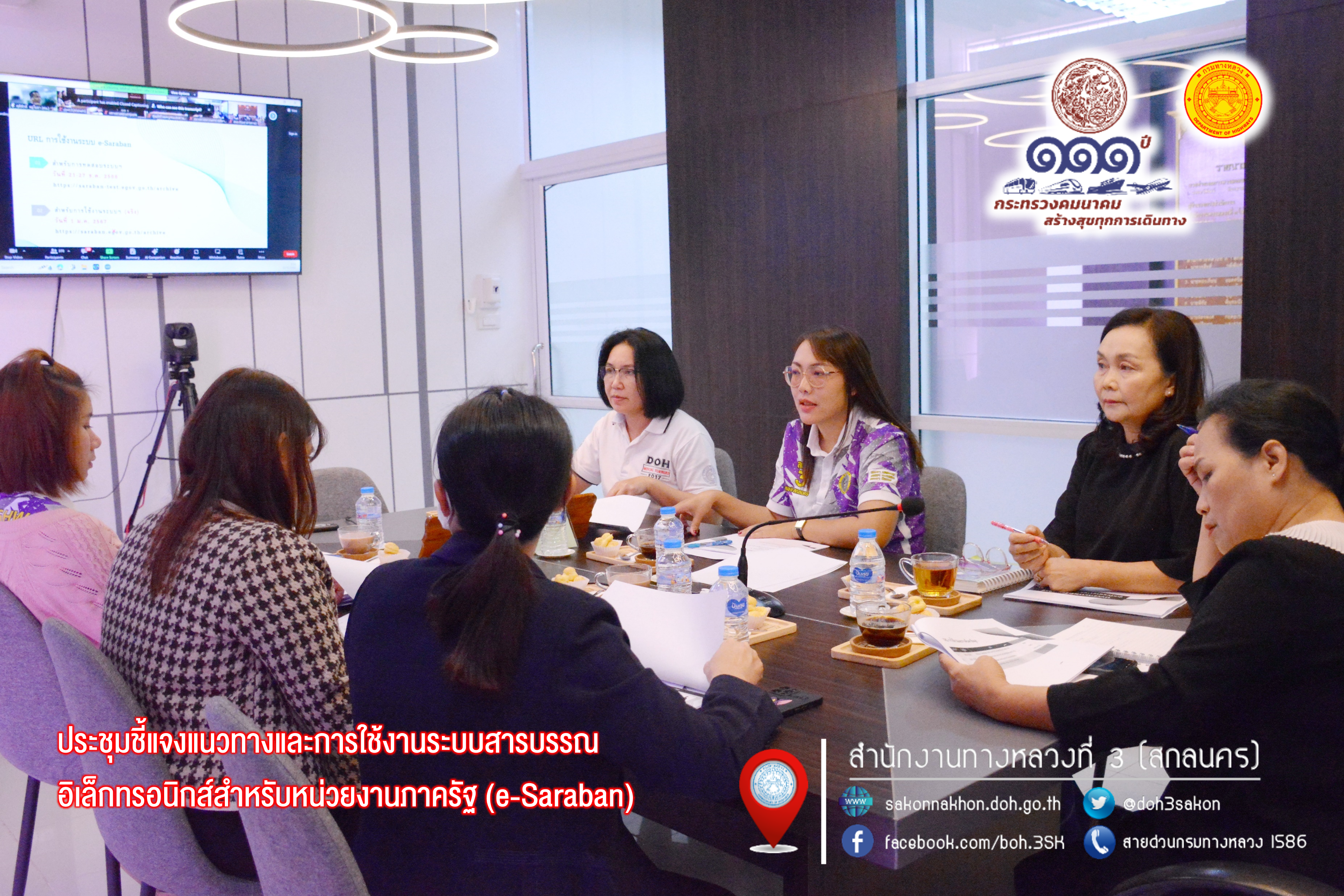 นางพวงเพชร เบญจมาศ หัวหน้างานสารบรรณ พร้อมด้วย เจ้าหน้าที่ฝ่ายบริหารงานทั่วไป และส่วนเทคโนโลยีสารสนเทศ เข้าร่วมประชุมชี้แจงแนวทางและการใช้งานระบบสารบรรณอิเล็กทรอนิกส์สำหรับหน่วยงานภาครัฐ (e-Saraban) ผ่านระบบออนไลน์ Zoom Cloud meeting ณ ห้องประชุมชั้น 2 สำนักงานทางหลวงที่ 3 (สกลนคร) อาคารหลังใหม่ จัดโดย ศูนย์เทคโนโลยีสารสนเทศ กรมทางหลวง