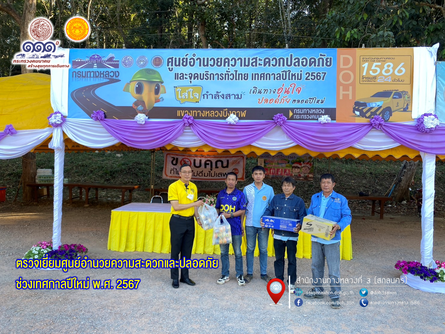 นายพัลลภ จันทร์งามปภากูล ผู้อำนวยการสำนักงานทางหลวงที่ 3 ลงพื้นตรวจเยี่ยมศูนย์อำนวยความสะดวกและปลอดภัยช่วงเทศกาลปีใหม่ พ.ศ. 2567 ณ จุดบริการทั่วไทย นั้นทีแขวงทางหลวงบึงกาฬ เพื่อสร้างขวัญแลกำลังใจ ให้กับเจ้าหน้าที่ผู้ปฎิบัติงาน