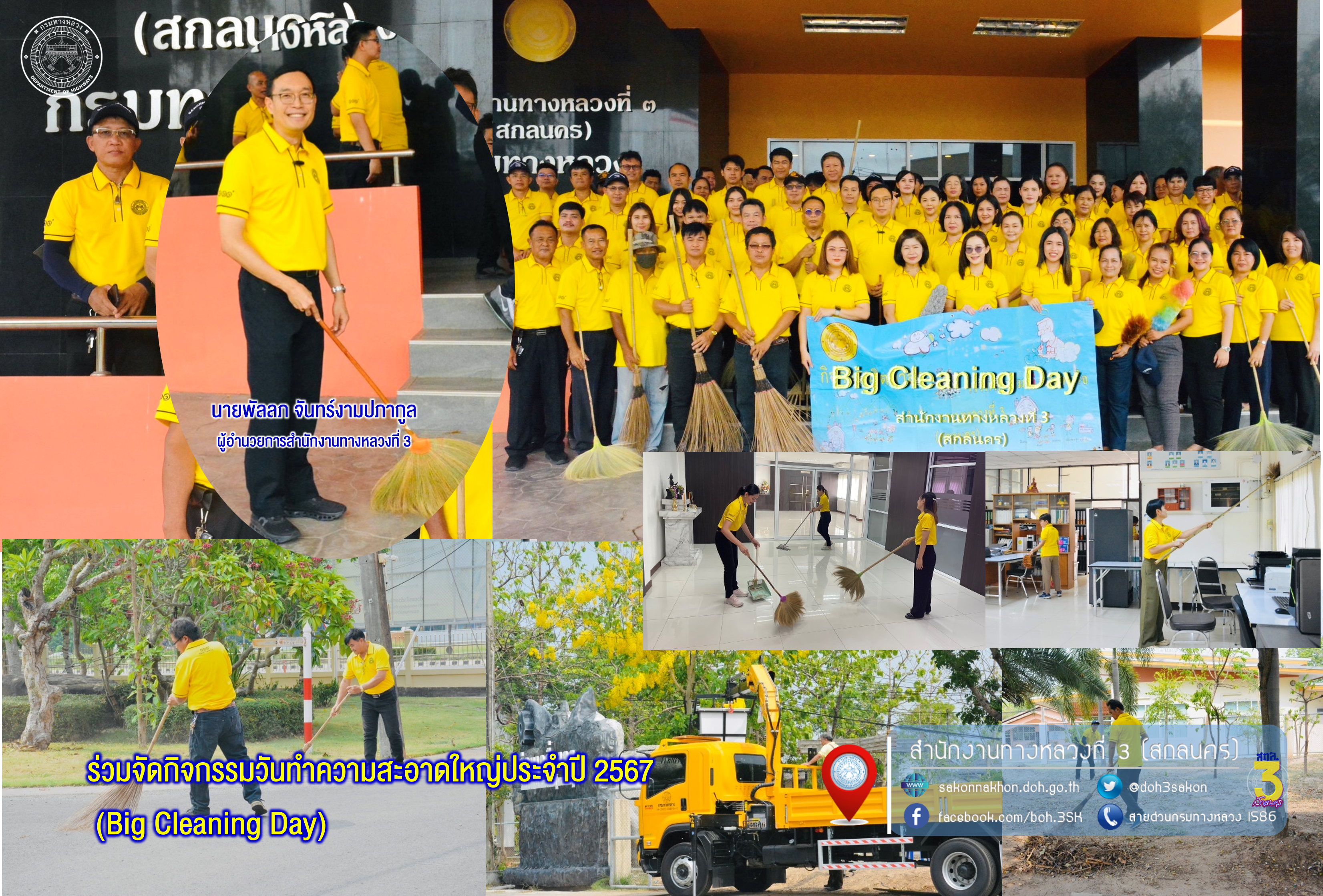 วันที่ 1 พฤษภาคม 2567 เวลา 09.00 น.สำนักงานทางหลวงที่ 3 (สกลนคร) นำโดยนายพัลลภ จันทร์งามปภากูล ผู้อำนวยการสำนักงานทางหลวงที่ 3 พร้อมด้วยข้าราชการ พนักงาน และเจ้าหน้าที่ส่วน/ฝ่าย/งาน ร่วมจัดกิจกรรมวันทำความสะอาดใหญ่ประจำปี 2567 (Big Cleaning Day) ภายในบริเวณสำนักงานทางหลวงที่ 3 (สกลนคร) เนื่องในโอกาสพระบาทสมเด็จพระปรเมนทรรามาธิบดีศรีสินทรมหาวชิราลงกรณ พระวชิรเกล้าเจ้าอยู่หัวรัชกาลที่ 10 ทรงมีพระชนมพรรษา 6 รอบ 72 พรรษา