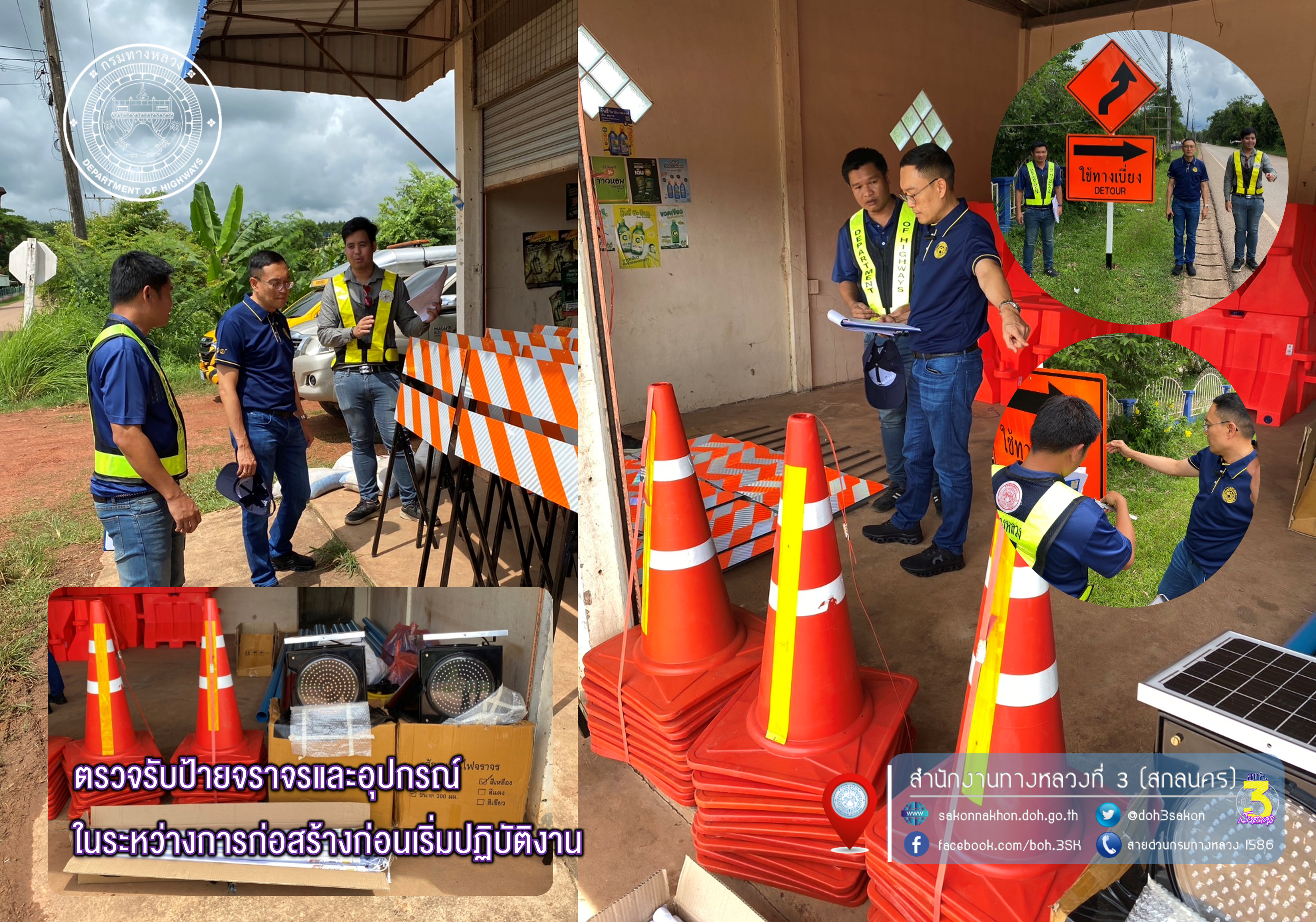 วันที่ 27 มิถุนายน 2567 นายพัลลภ จันทร์งามปภากูล ผู้อำนวยการสำนักงานทางหลวงที่ 3 ประธานกรรมการตรวจรับพัสดุ พร้อมด้วย นายวิริยะ ปากดีสี วิศวกรโยธาปฏิบัติการ นายช่างผู้ควบคุมงานก่อสร้าง ลงพื้นที่ตรวจรับป้ายจราจรและอุปกรณ์ในระหว่างการก่อสร้างก่อนเริ่มปฏิบัติงาน จำนวน 2 โครงการฯ