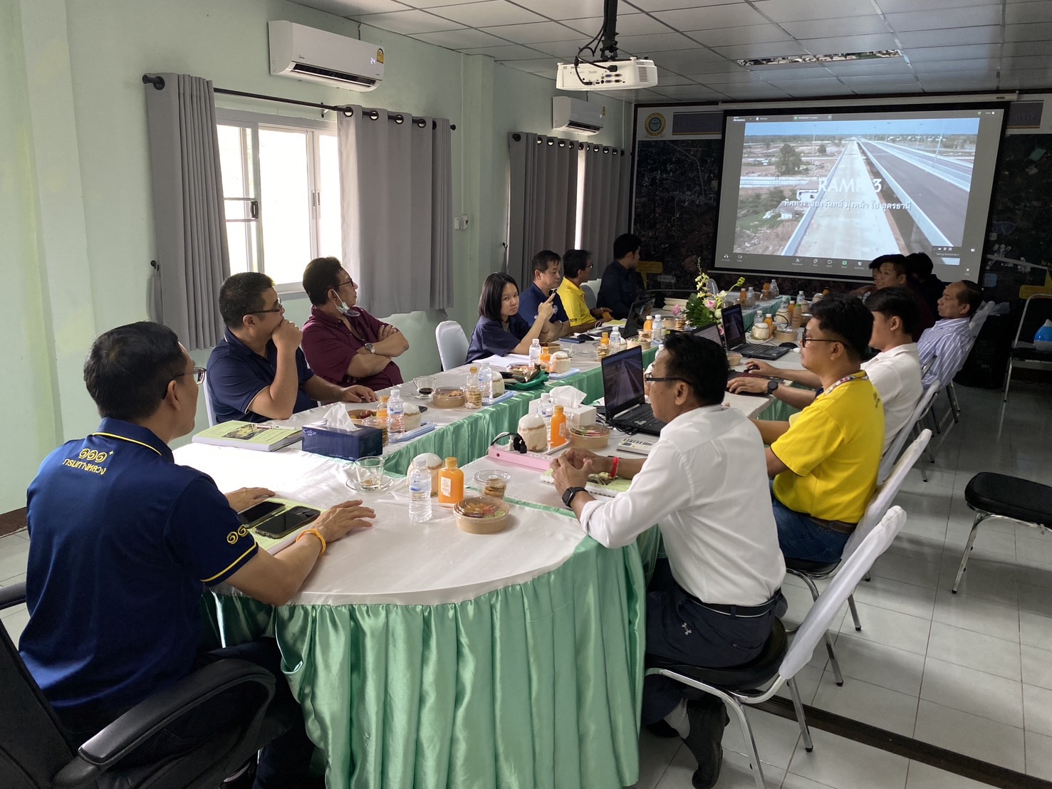 วันที่ 10 กรกฎาคม 2567 เวลา 10.30 น. นายจิระพงศ์ เทพพิทักษ์ รองอธิบดีกรมทางหลวง ประธานกรรมการตรวจรับพัสดุ มอบให้นายพัลลภ จันทร์งามปภากูล ผู้อำนวยการสำนักงานทางหลวงที่ 3 กรรมการตรวจรับพัสดุ พร้อมด้วยคณะกรรมการตรวจรับพัสดุ ลงพื้นที่ติดตามความคืบหน้าโครงการก่อสร้างสายทางเลี่ยงเมืองหนองคาย (ด้านตะวันออก) ตอน 1 จังหวัดหนองคาย บนทางหลวงหมายเลข 2 ระหว่าง กม.502+000 - กม.507+750 ระยะทางรวม 5.750 กม. วงเงินงบประมาณ 1,544,634,300บาท (ตรวจรับงานงวดที่ 35) มีบริษัท ซิโน-ไทย เอ็นจีเนียริ่ง แอนด์ คอนสตรัคชั่น จำกัด(มหาชน) เป็นผู้รับจ้าง เพื่อให้การดำเนินงานก่อสร้างทางหลวงแผ่นดินได้ตามแบบมาตรฐานของกรมทางหลวง กระทรวงคมนาคม พร้อมรับฟังบรรยายสรุปผลการดำเนินงานของโครงการฯ ณ ห้องประชุมสำนักงานชั่วคราวของโครงการฯ ควบคุมการก่อสร้างโดยสำนักก่อสร้างสะพาน กรมทางหลวง