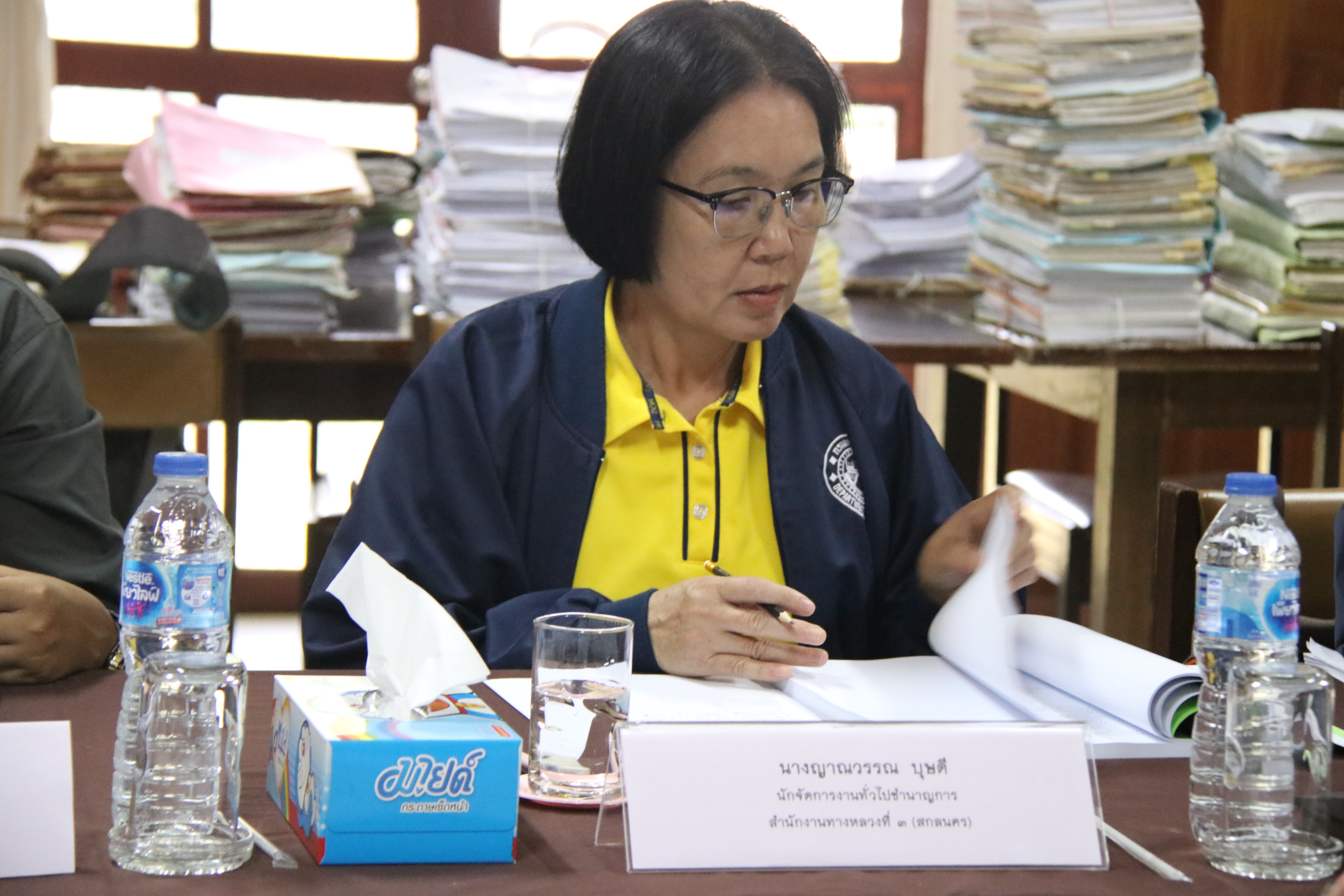 วันที่ 21 สิงหาคม 2567 เวลา 09.00 น. นางนภาพิศ สุวรรณศรี ผู้อำนวยการฝ่ายบริหารงานทั่วไป พร้อมด้วย นางพวงเพชร เบญจมาศ หัวหน้างานสารบรรณ และ นางญาณวรรณ บุษดี นักจัดการงานทั่วไปชำนาญการ ได้รับมอบหมายจาก ผู้อำนวยการสำนักงานทางหลวงที่ 3 ให้เข้าร่วมประชุมคณะกรรมการประเมินคุณค่า ชุด สำนักงานทางหลวงที่ 3 ณ ห้องประชุม หอจดหมายเหตุแห่งชาติเฉลิมพระเกียรติสมเด็จพระบรมโอรสาธิราชฯ สยามมกุฎราชกุมาร อุบลราชธานี โดยมี นางณิชชา จริยเศรษฐการ ผู้อำนวยการสำนักหอจดหมายเหตุแห่งชาติ เป็นประธานฯ