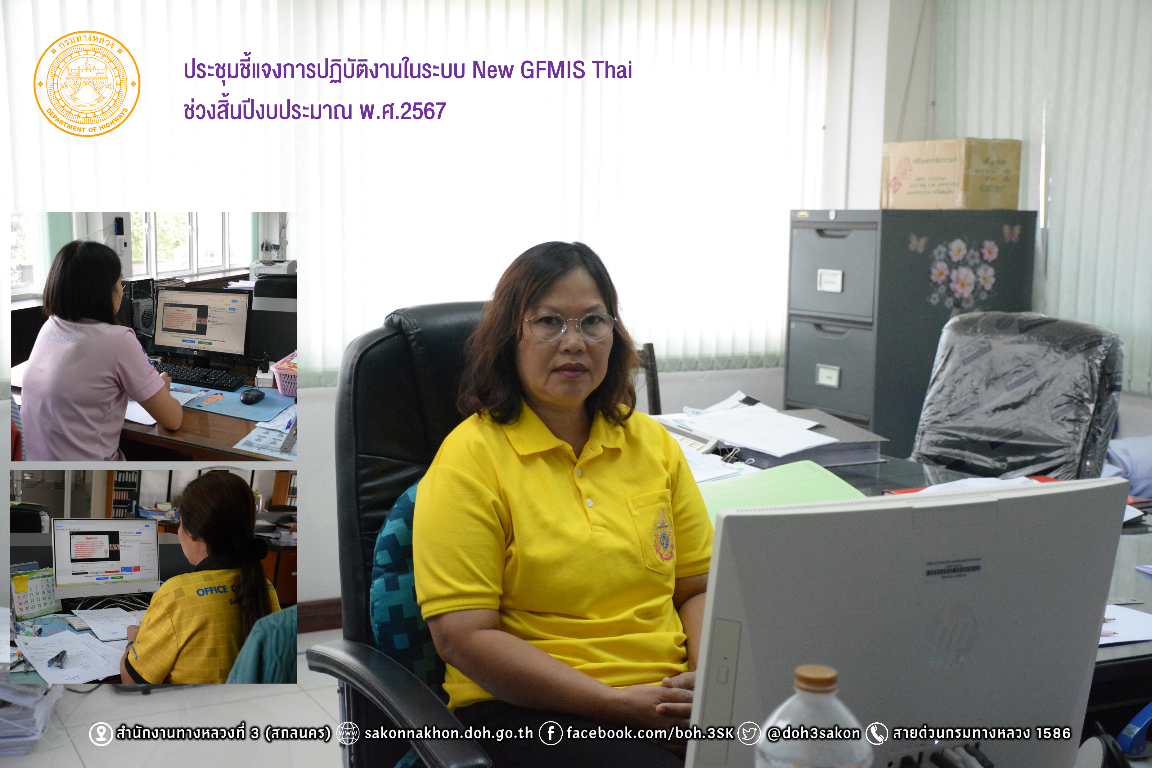 นที่ 3 กันยายน 2567 เวลา 09.30 - 16.00 น. นางรุ่งดาว ชมภูวิเศษ หัวหน้างานการเงินและบัญชี พร้อมด้วยเจ้าหน้าที่งานการเงินและบัญชี และงานพัสดุและสัญญา เข้าร่วมประชุมชี้แจงการปฏิบัติงานในระบบ New GFMIS Thai ช่วงสิ้นปีงบประมาณ พ.ศ.2567 เพื่อความรู้ ความเข้าใจ และสามารถปฏิบัติงานเกี่ยวกับระบบ New GFMIS Thai ในการเตรียมความพร้อมการปฏิบัติงานก่อนสิ้นปีงบประมาณได้อย่างครบถ้วนถูกต้องและเพื่อให้มีความรู้ ความเข้าใจเกี่ยวกับหลักเกณฑ์/แนวทางการกันเงินไว้เบิกเหลื่อมปีและขยายเวลาการเบิกจ่ายเงิน โดยประชุมออนไลน์ผ่าน Facebook Live ทาง Facebook Page : กรมบัญชีกลาง The Comptroller General’s Department ณ สำนักงานทางหลวงที่3 (สกลนคร) จัดโดย กรมบัญชีกลาง โดยมี นายกุลเศขร์ ลิมปิยากร รองอธิบดีกรมบัญชีกลาง เป็นประธานฯ