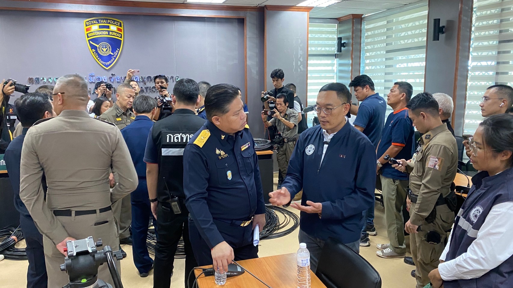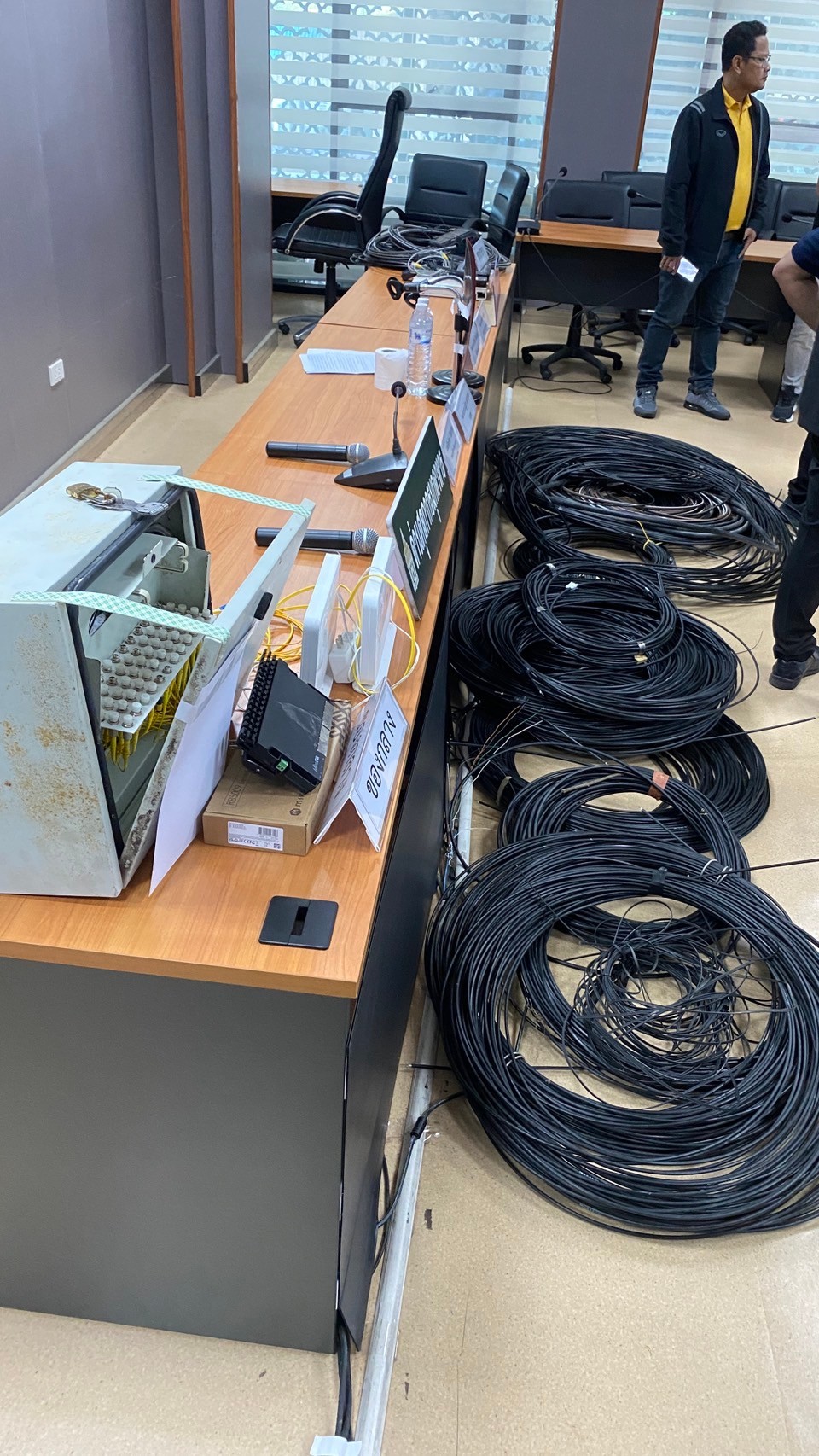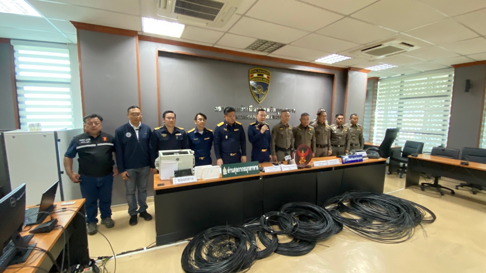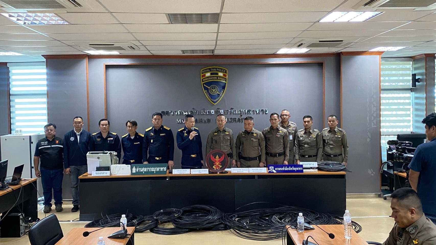 วันที่ 20 ตุลาคม 2567 พล.ต.ท.ดร.ธัชชัย ปิตะนีละบุตร ผู้ช่วย ผบ.ตร พร้อมด้วย พล.ต.ต.ชัชชัย ผบก.ภ.จว.มุกดาหาร พล.ต.อ.ดร.ณัฐธร เพราะสุนทร กสทช. นายไตรรัตน์ วิริยะศิริกุล รองเลขาธิการ รักษาการแทน เลขาธิการ กสทช. นายพัลลภ จันทร์งามปภากูล ผู้อำนวยการสำนักงานทางหลวงที่ 3 และเจ้าหน้าที่ด่านศุลกากรสะพานมิตรภาพไทย-ลาว แห่งที่ 2 (มุกดาหาร–สะหวันนะเขต) ลงพื้นที่จุดที่เกิดเหตุคนร้ายลักลอบนำสัญญาอินเทอร์เน็ตข้ามแดนบริเวณแนวชายแดนจังหวัดมุกดาหาร บนสะพานมิตรภาพไทย-ลาว แห่งที่ 2 (มุกดาหาร–สะหวันนะเขต)