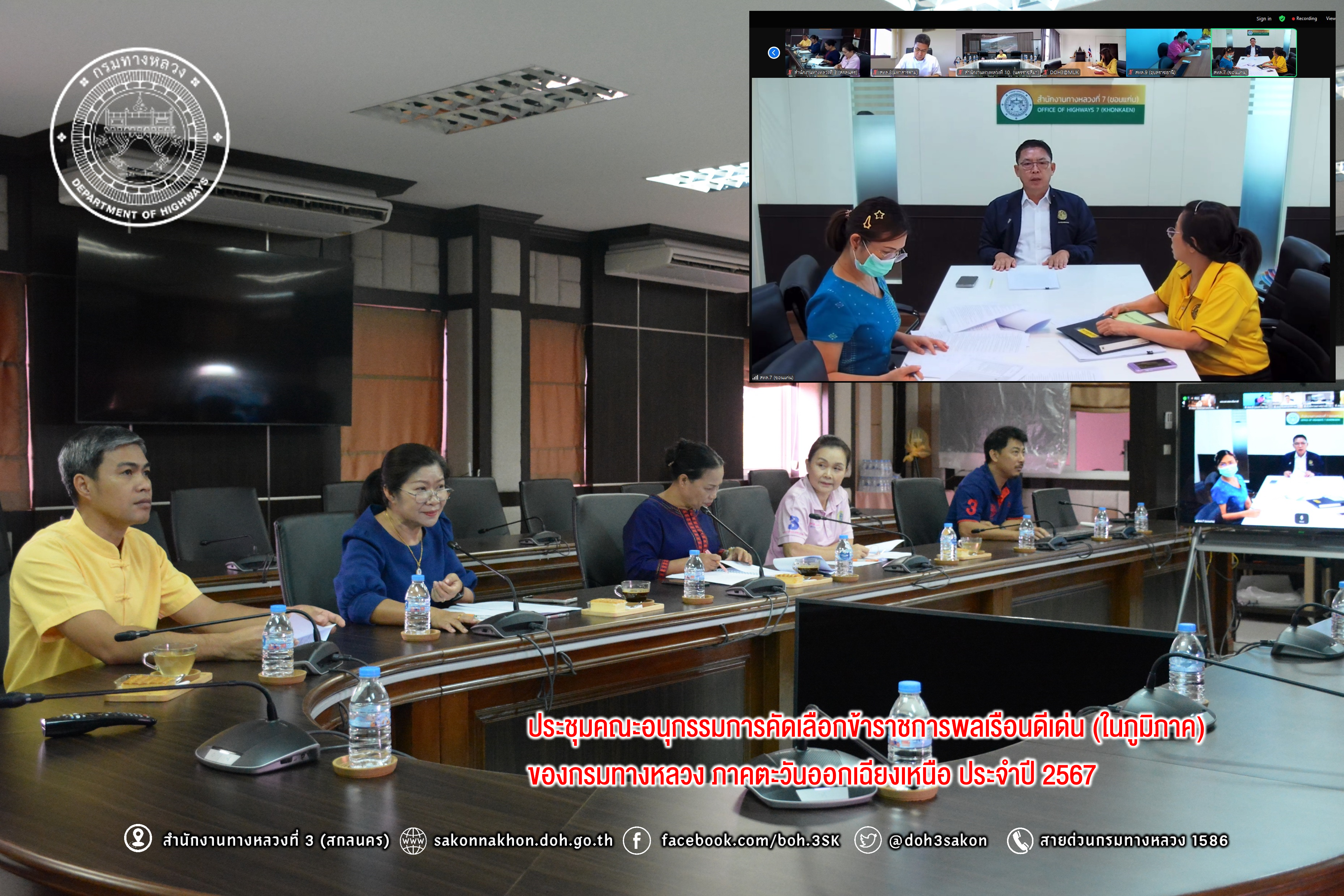วันที่ 29 ตุลาคม 2567 เวลา 10.00 น. นางนภาพิศ สุวรรณศรี ผู้อำนวยการส่วนบริหาร พร้อมด้วย นายชินนพัทธ์ มุลทาทอง ผู้อำนวยการส่วนแผนงาน นางพวงเพชร เบญจมาศ หัวหน้างานสารบรรณ และนางมุทิชา นนตะเสน เจ้าพนักงานธุรการชำนาญงาน ได้รับมอบหมายจาก ผู้อำนวยการสำนักงานทางหลวงที่ 3 ให้เข้าร่วมประชุมคณะอนุกรรมการคัดเลือกข้าราชการพลเรือนดีเด่น (ในภูมิภาค) ของกรมทางหลวง ภาคตะวันออกเฉียงเหนือ ประจำปี 2567 เพื่อกำหนดแนวทางและหลักเกณฑ์ในการพิจารณาคัดเลือกข้าราชการพลเรือนดีเด่น ผ่านระบบ Zoom ณ ห้องประชุมทวีพัฒน์ ตินะมาส ชั้น 3 อาคารหลังใหม่ โดยมี นายอำนวยพร ศรีอิสรานุสรณ์ผู้อำนวยการสำนักงานทางหลวงที่ 7 (ขอนแก่น) เป็นประธานอนุกรรมการฯ