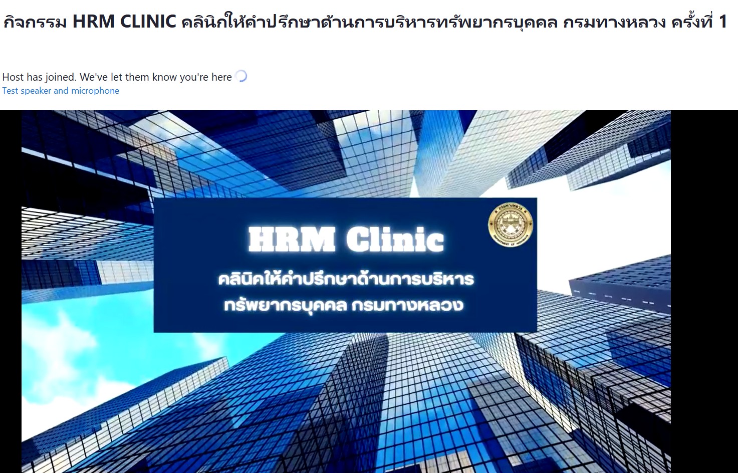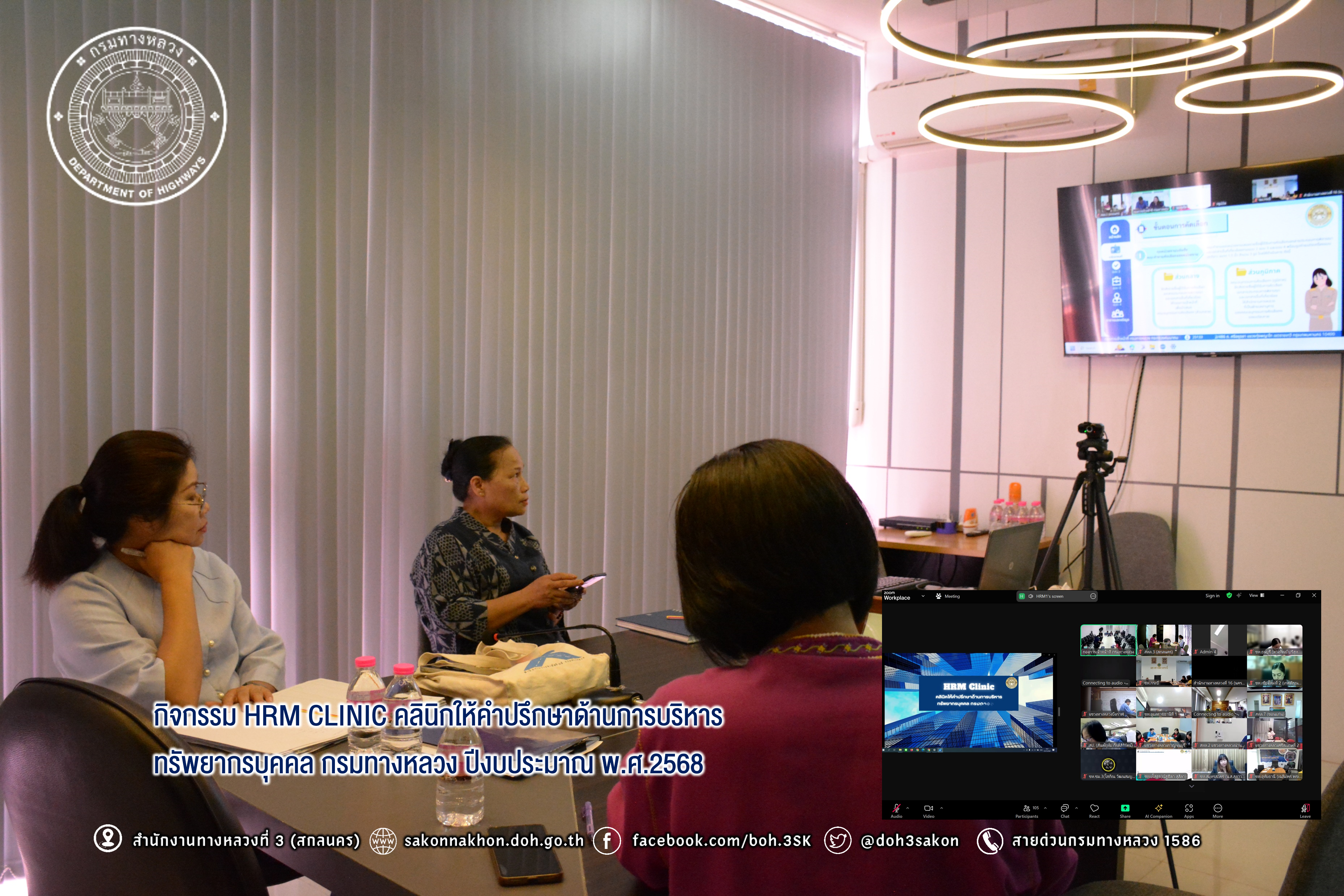 วันที่ 15 พฤศจิกายน 2567 เวลา 10.00 - 12.00 น.นางนภาพิศ สุวรรณศรี ผบ.ทล.3 พร้อมด้วย เจ้าหน้าที่งานสารบรรณ ได้รับมอบหมายจากผู้อำนวยการสำนักงานทางหลวงที่ 3 ให้เข้าร่วมกิจกรรม HRM CLINIC คลินิกให้คำปรึกษาด้านการบริหารทรัพยากรบุคคล กรมทางหลวง ปีงบประมาณ พ.ศ.2568 ช่วงที่ 1 ในหัวข้อ “การคัดเลือกข้าราชการดีเด่น” ผ่านระบบ Zoom Cloud Meeting ณ ห้องประชุมชั้น 2 อาคารหลังใหม่ สำนักงานทางหลวงที่ 3 (สกลนคร)