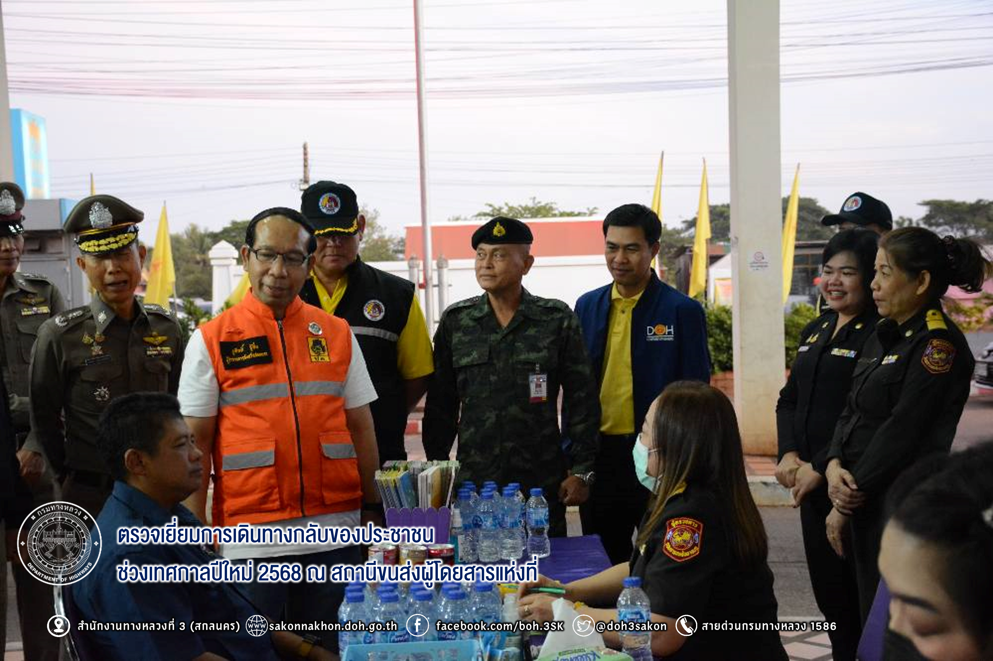 วันที่ 1 มกราคม 2568 เวลา 18.00 น.นายชินนพัทธ์ มุลทาทอง ผู้อำนวยการส่วนแผนงานได้รับมอบหมายจากผู้อำนวยการสำนักงานทางหลวงที่ 3 ให้ร่วมตรวจเยี่ยมการเดินทางกลับของประชาชน และส่งประชาชนที่เดินทางกลับไปทำงานที่กรุงเทพฯ ปริมลฑล จังหวัดอื่นๆ และตรวจความพร้อมพนักงาน รถโดยสารสาธารณะ ช่วงเทศกาลปีใหม่ 2568 ณ สถานีขนส่งผู้โดยสารแห่งที่ 2 จังหวัดสกลนคร โดยมี นายชูศักดิ์ รู้ยิ่ง ผู้ว่าราชการจังหวัดสกลนคร เป็นประธานตรวจเยี่ยมฯ