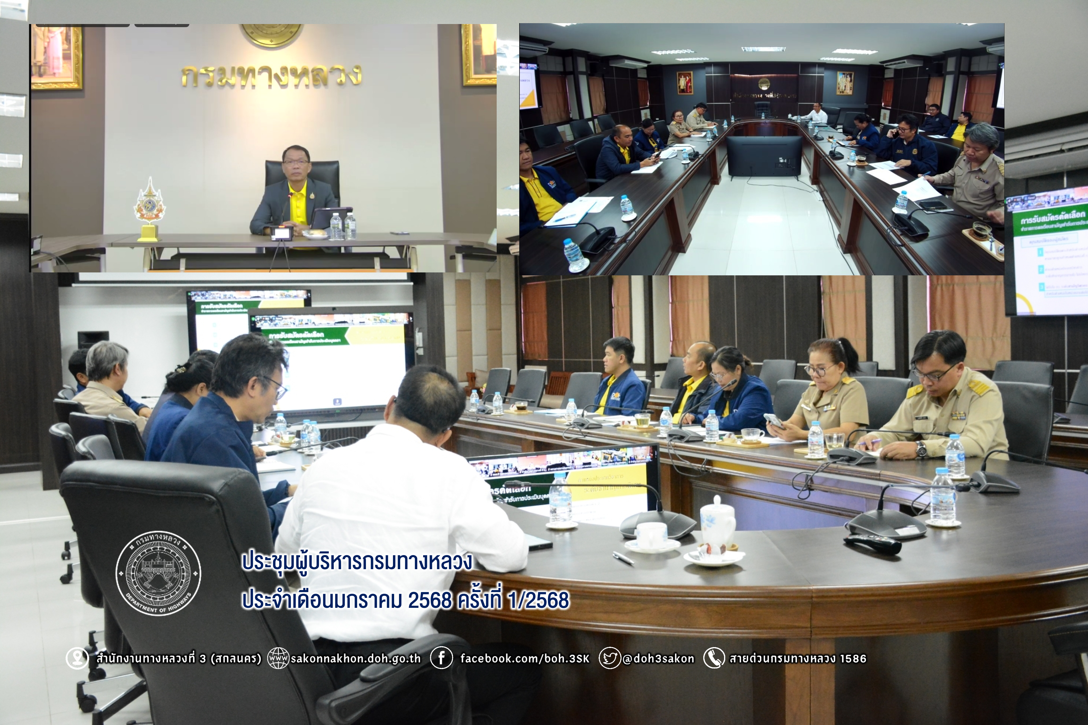 วันที่ 6 มกราคม 2568 เวลา 13.30 - 16.30 น.นายประวัติ เสวตวงษ์ รส.ทล.3.2 พร้อมด้วย ผู้อำนวยการส่วน/ฝ่าย หัวหน้างาน และเจ้าหน้าที่ที่เกี่ยวข้อง ได้รับมอบหมายจาก ผู้อำนวยการสำนักงานทางหลวงที่ 3 ให้เข้าร่วมประชุมผู้บริหารกรมทางหลวง ประจำเดือนมกราคม 2568 ครั้งที่ 1/2568 ผ่านสื่ออิเล็กทรอนิกส์แอปพลิเคชั่น Zoom Cloud Meeting ณ ห้องประชุมทวีพัฒน์ ตินะมาส ชั้น 3 อาคารหลังใหม่ โดยมี นายอภิรัฐ ไชยวงศ์น้อย อธิบดีกรมทางหลวง เป็นประธานฯ