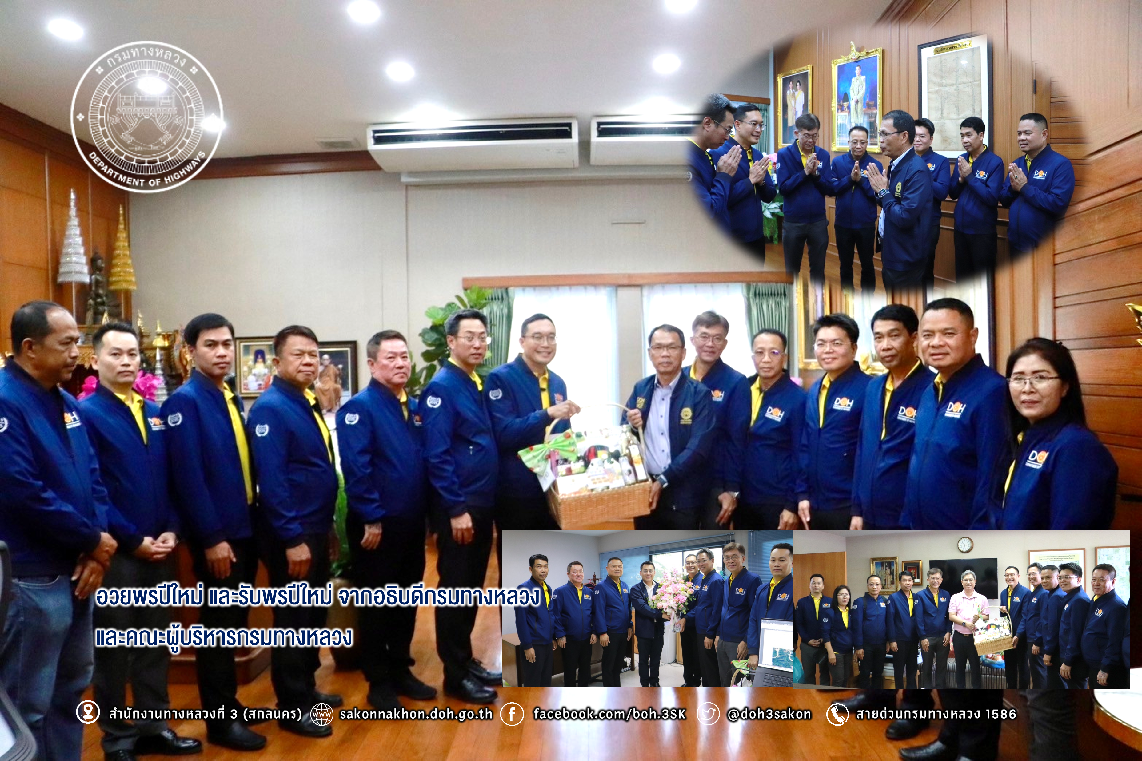 วันที่ 7 มกราคม 2568 นายพัลลภ จันทร์งามปภากูล ผู้อำนวยการสำนักงานทางหลวงที่ 3 พร้อมด้วยผู้อำนวยการแขวงทางหลวงในสังกัด และเจ้าหน้าที่สำนักงานทางหลวงที่ 3 (สกลนคร) ร่วมอวยพรปีใหม่2568 และรับพรปีใหม่ จากนายอภิรัฐ ไชยวงศ์น้อย อธิบดีกรมทางหลวง และคณะผู้บริหารกรมทางหลวง