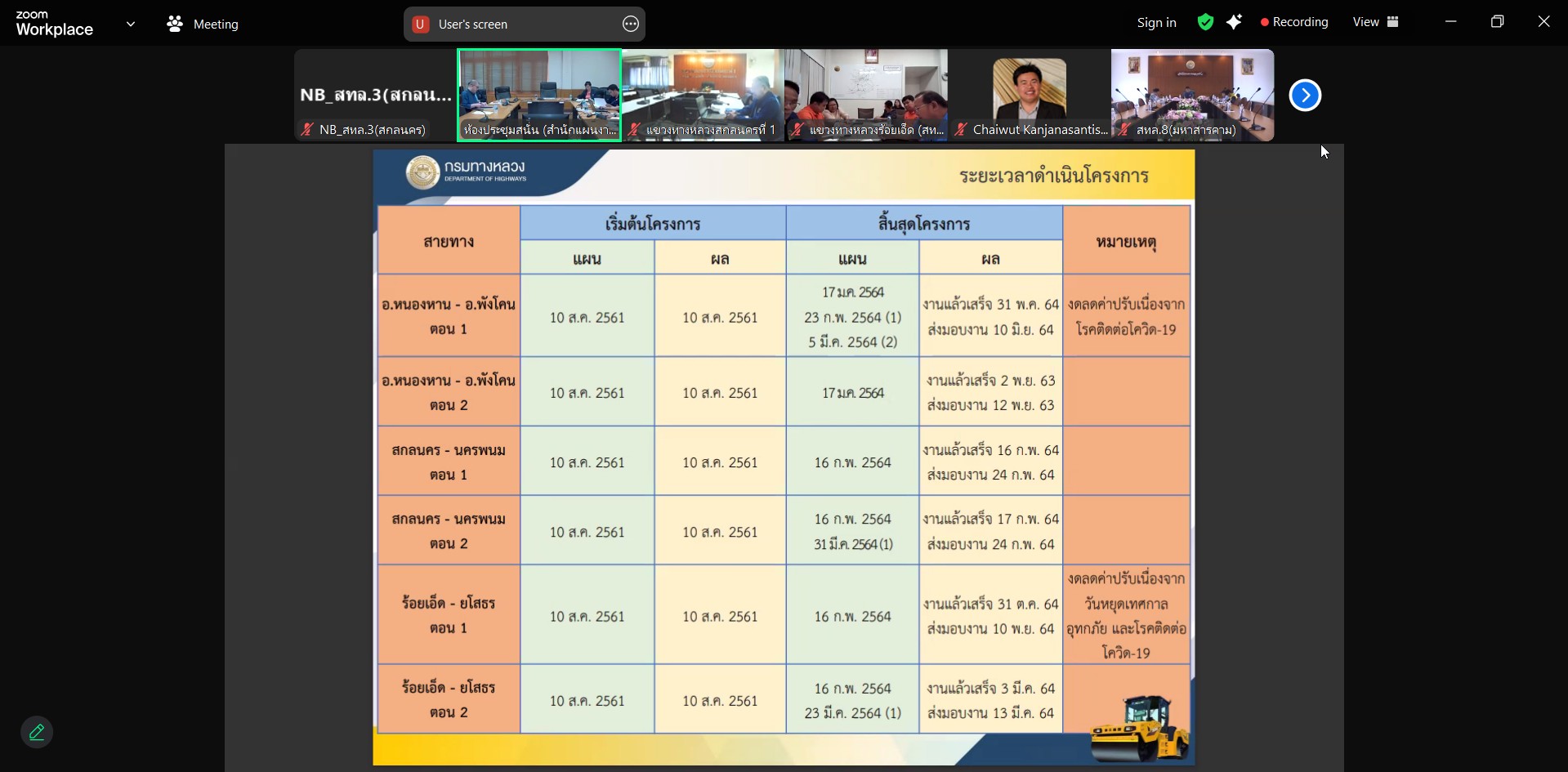 วันที่ 16 มกราคม 2568 เวลา 13.30 - 14.30 น. นายพัลลภ จันทร์งามปภากูล ผู้อำนวยการสำนักงานทางหลวงที่ 3 พร้อมด้วย นายเดชา พรวนพิทักษ์ รส.ทล.3.1, นายประวัติ เสวตวงษ์ รส.ทล.3.2, นายประสิทธิ์ สาขา ผอ.ขท.สกลนครที่ 1 และนายชินนพัทธ์ มุลทาทอง วผ.ทล.3 เข้าร่วมประชุมเพื่อเตรียมการลงพื้นที่ร่วมกับสำนักงานบริหารหนี้สาธารณะเพื่อประกอบการประเมินผลโครงการของกรมทางหลวง ประจำปีงบประมาณ พ.ศ. 2568 (ครั้งที่ 2) ผ่านระบบ Zoom Cloud Meeting ณ ห้องประชุมทวีพัฒน์ ตินะมาส ชั้น 3 อาคารหลังใหม่