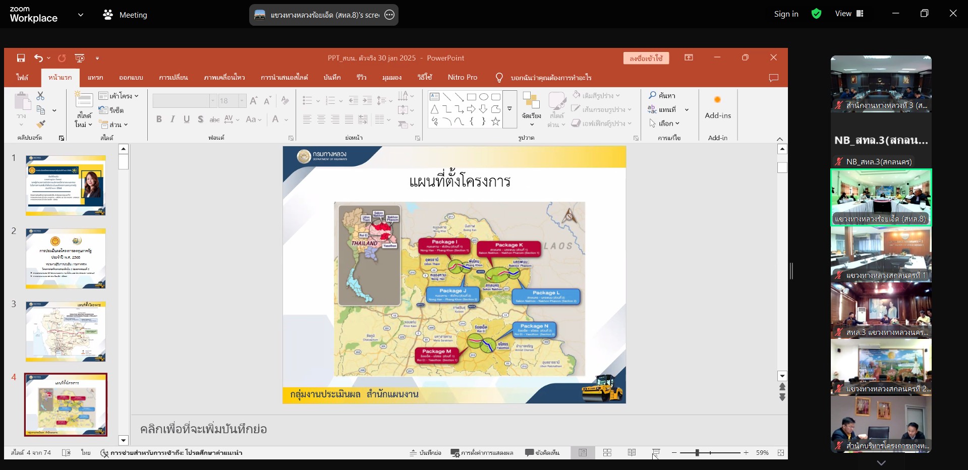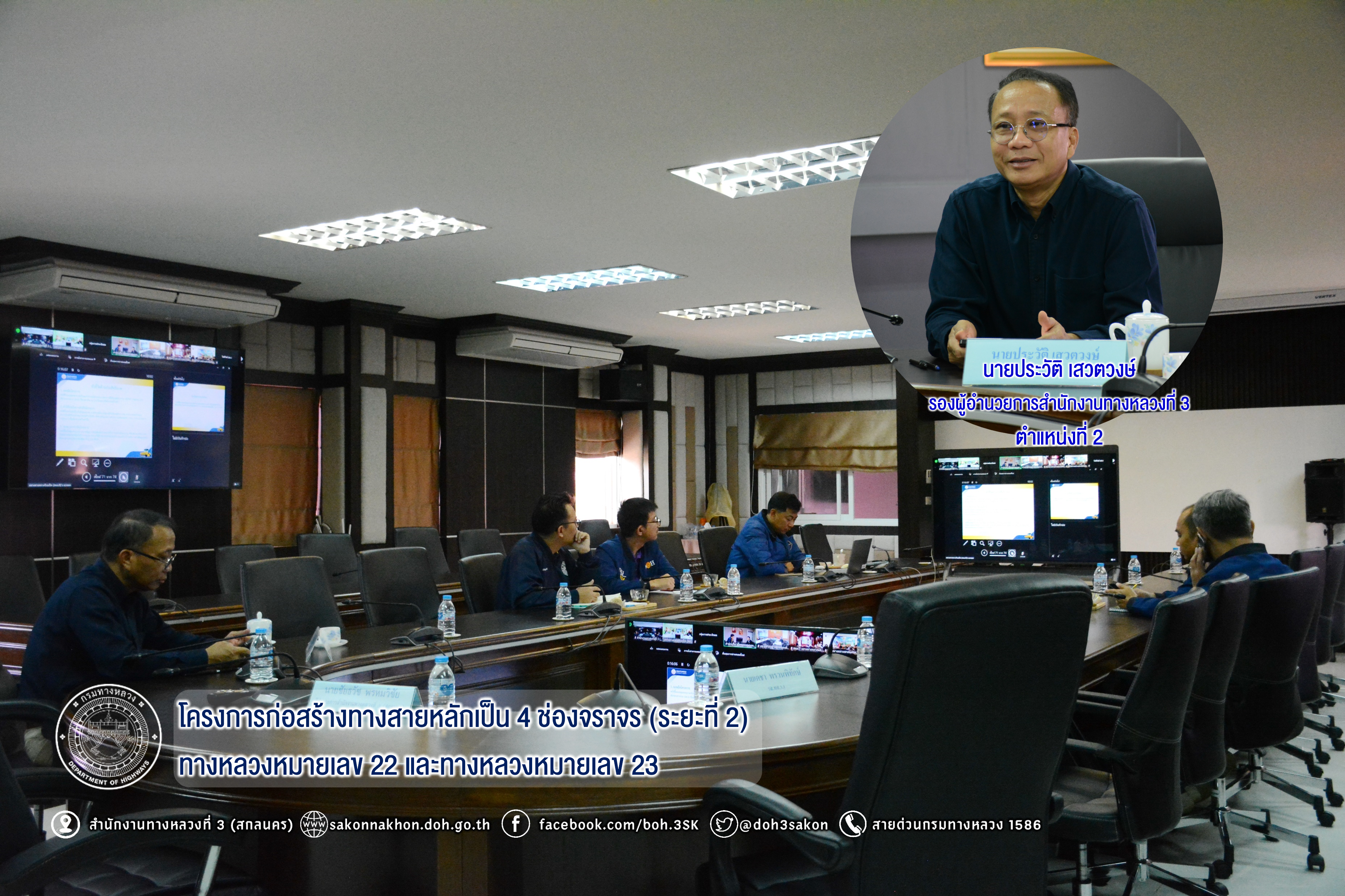 วันที่ 30 มกราคม 2568 เวลา 09.00 - 12.00 น.นายประวัติ เสวตวงษ์ รองผู้อำนวยการสำนักงานทางหลวงที่ 3 พร้อมด้วย วิศวกรโยธาและนายช่างโยธา ส่วนแผนงาน ได้รับมอบหมายจากผู้อำนวยการสำนักงานทางหลวงที่ 3 ให้เข้าร่วมรับฟังการบรรยายสรุปผลการดำเนินงานและปัญหาอุปสรรคของโครงการก่อสร้างทางสายหลักเป็น 4 ช่องจราจร (ระยะที่ 2) ทางหลวงหมายเลข 22 และทางหลวงหมายเลข 23 ของกรมทางหลวง ผ่านระบบ Zoom Cloud meeting