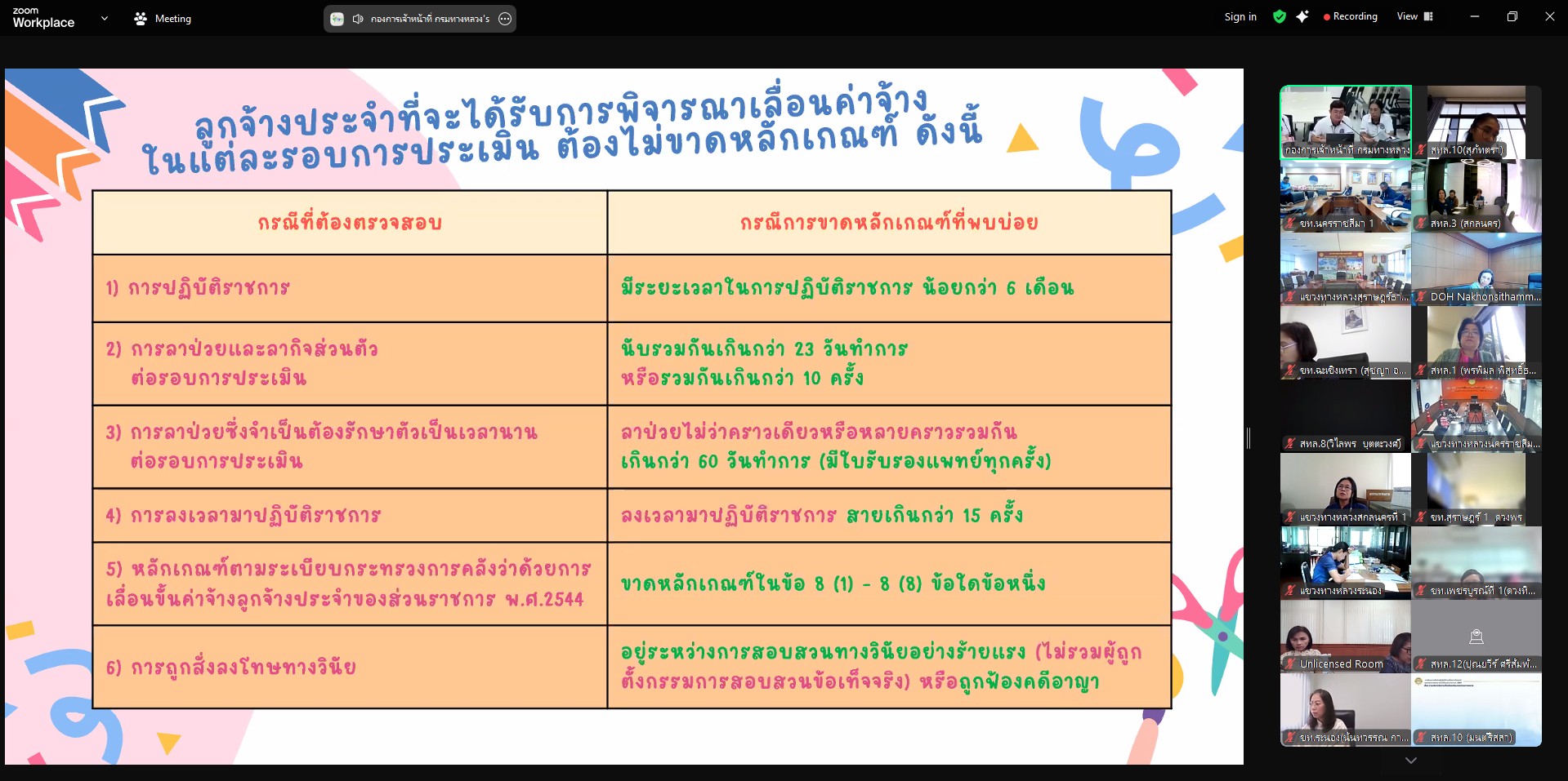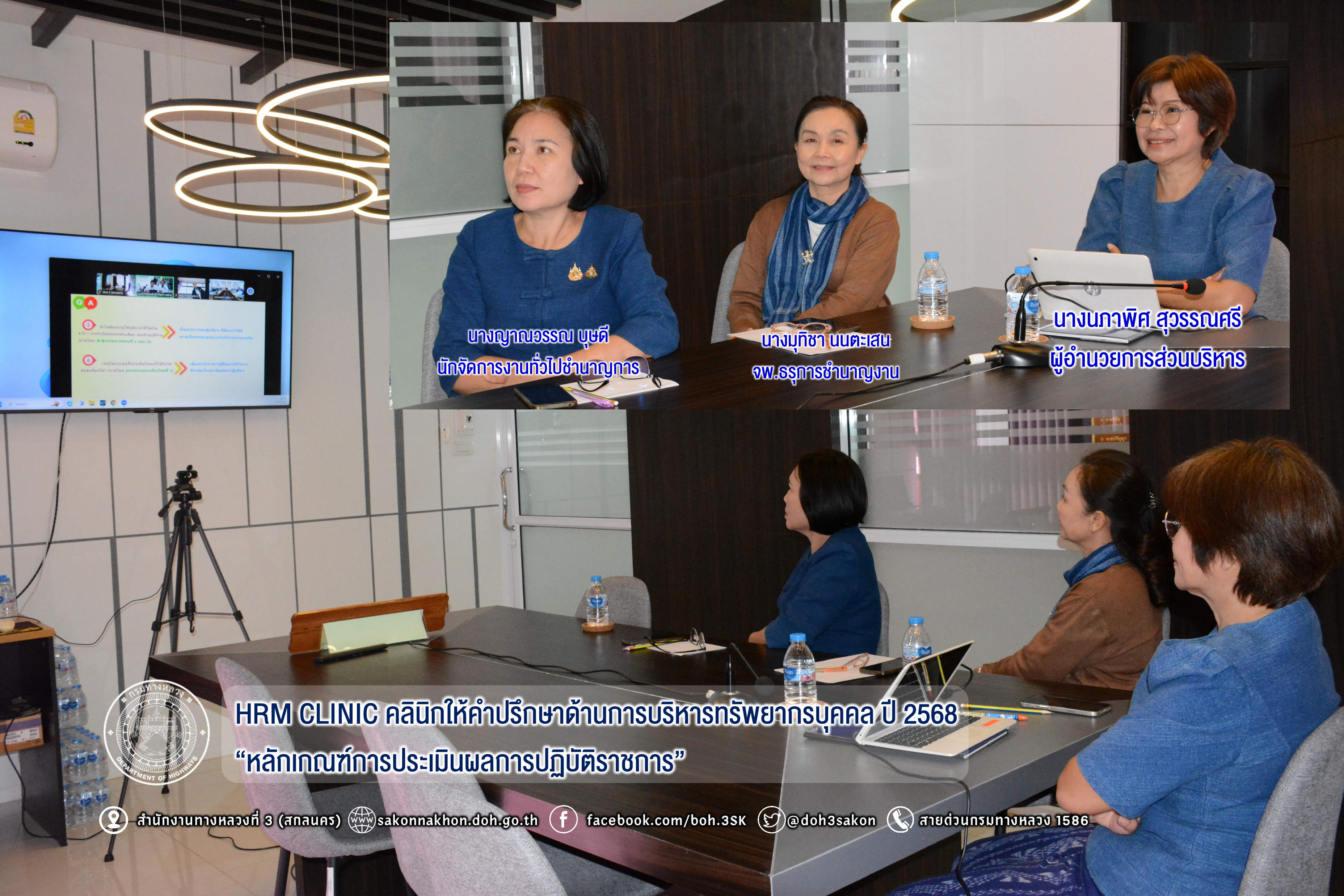 วันที่ 31 มกราคม 2568 เวลา 10.00 - 12.00 น.นางนภาพิศ สุวรรณศรี ผบ.ทล.3 พร้อมด้วย เจ้าหน้าที่งานสารบรรณ ได้รับมอบหมายจากผู้อำนวยการสำนักงานทางหลวงที่ 3 ให้เข้าร่วมกิจกรรม HRM CLINIC คลินิกให้คำปรึกษาด้านการบริหารทรัพยากรบุคคล กรมทางหลวง ปีงบประมาณ พ.ศ.2568 ช่วงที่ 1 ในหัวข้อ “หลักเกณฑ์การประเมินผลการปฏิบัติราชการ” ผ่านระบบ Zoom Cloud Meeting ณ ห้องประชุมชั้น 2 อาคารหลังใหม่ สำนักงานทางหลวงที่ 3 (สกลนคร)