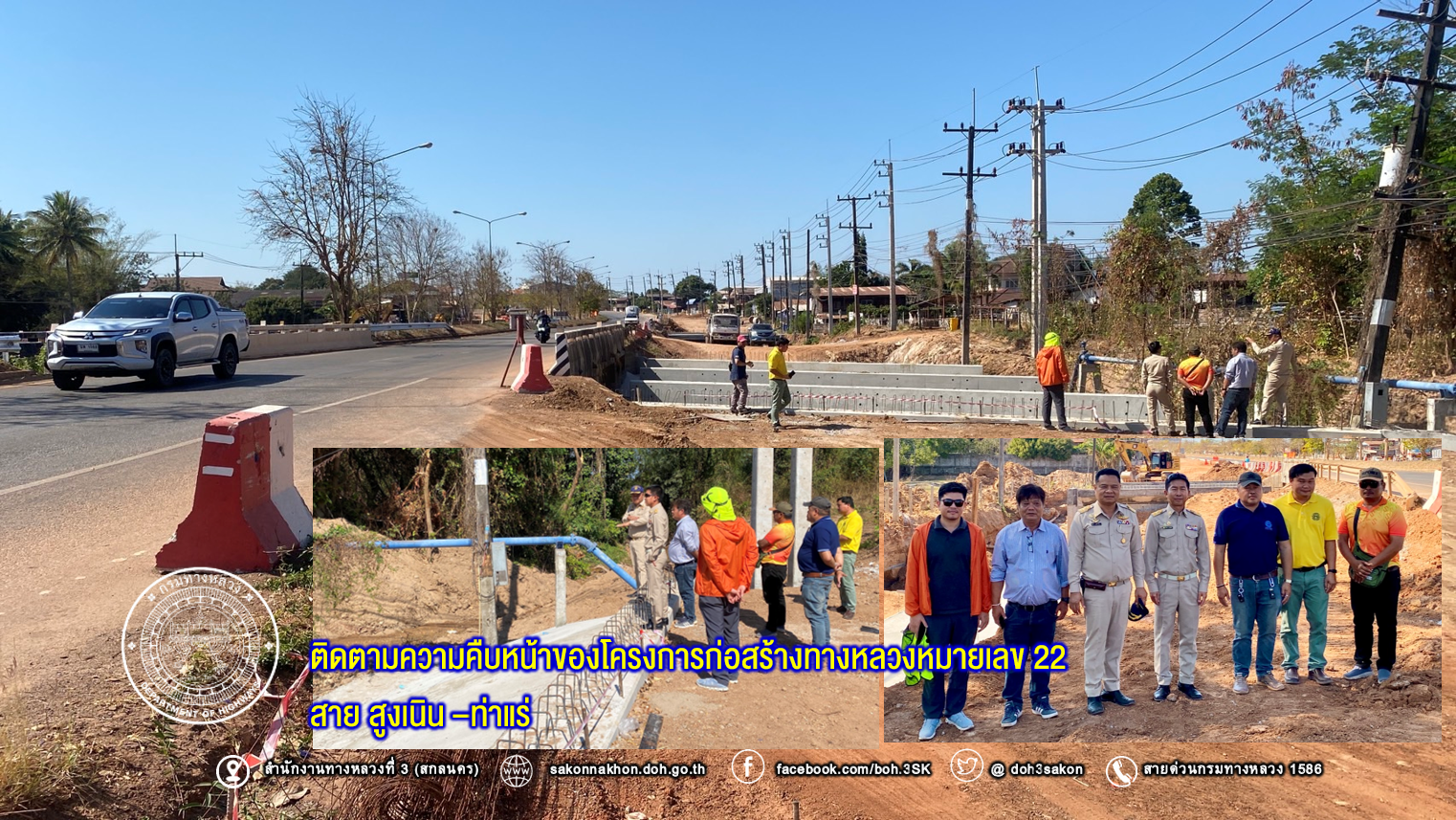 วันที่ 27 กุมภาพันธ์ 2568 เวลา 14.00 น.นายชัยธวัช พรหมวิชัย ผู้อำนวยการสำนักงานทางหลวงที่ 3 ประธานกรรมการตรวจรับพัสดุ พร้อมด้วยนายประสิทธิ์ สาขา ผู้อำนวยการแขวงทางหลวงสกลนครที่ 1 กรรมการตรวจรับพัสดุ และคณะกรรมการตรวจรับพัสดุ ลงพื้นที่ติดตามความคืบหน้าของโครงการก่อสร้างทางหลวงหมายเลข 22 สาย สูงเนิน –ท่าแร่ ระหว่าง กม.150+000 - กม.153+500 ระยะทางรวม 3.500 กม. วงเงินงบประมาณ 150,062,000 บาท (ตรวจรับงานงวดที่ 2 ) เพื่อให้การดำเนินงานก่อสร้างทางหลวงแผ่นดินได้มาตรฐานของกรมทางหลวง กระทรวงคมนาคม มีห้างหุ้นส่วนศิริสินก่อสร้าง จำกัด เป็นผู้รับจ้าง พร้อมรับฟังบรรยายสรุปผลการดำเนินงานของโครงการฯ ณ ห้องประชุมสำนักงานชั่วคราวของโครงการฯ ควบคุมการก่อสร้างโดยสำนักก่อสร้างทางที่ 2 กรมทางหลวง