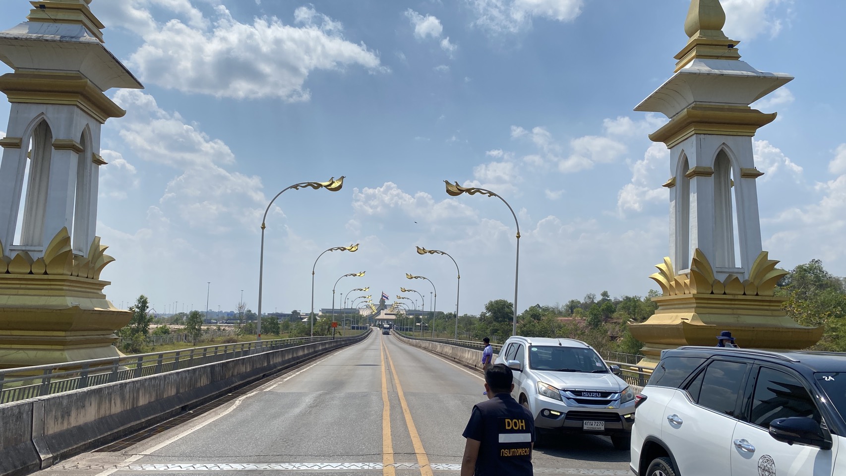 โดยมีนายรณชัย นางาม หัวหน้าฝ่ายบริหารสะพานมิตรภาพ 3 (มุกดาหาร - สะหวันนะเขต) ให้การต้อนรับ