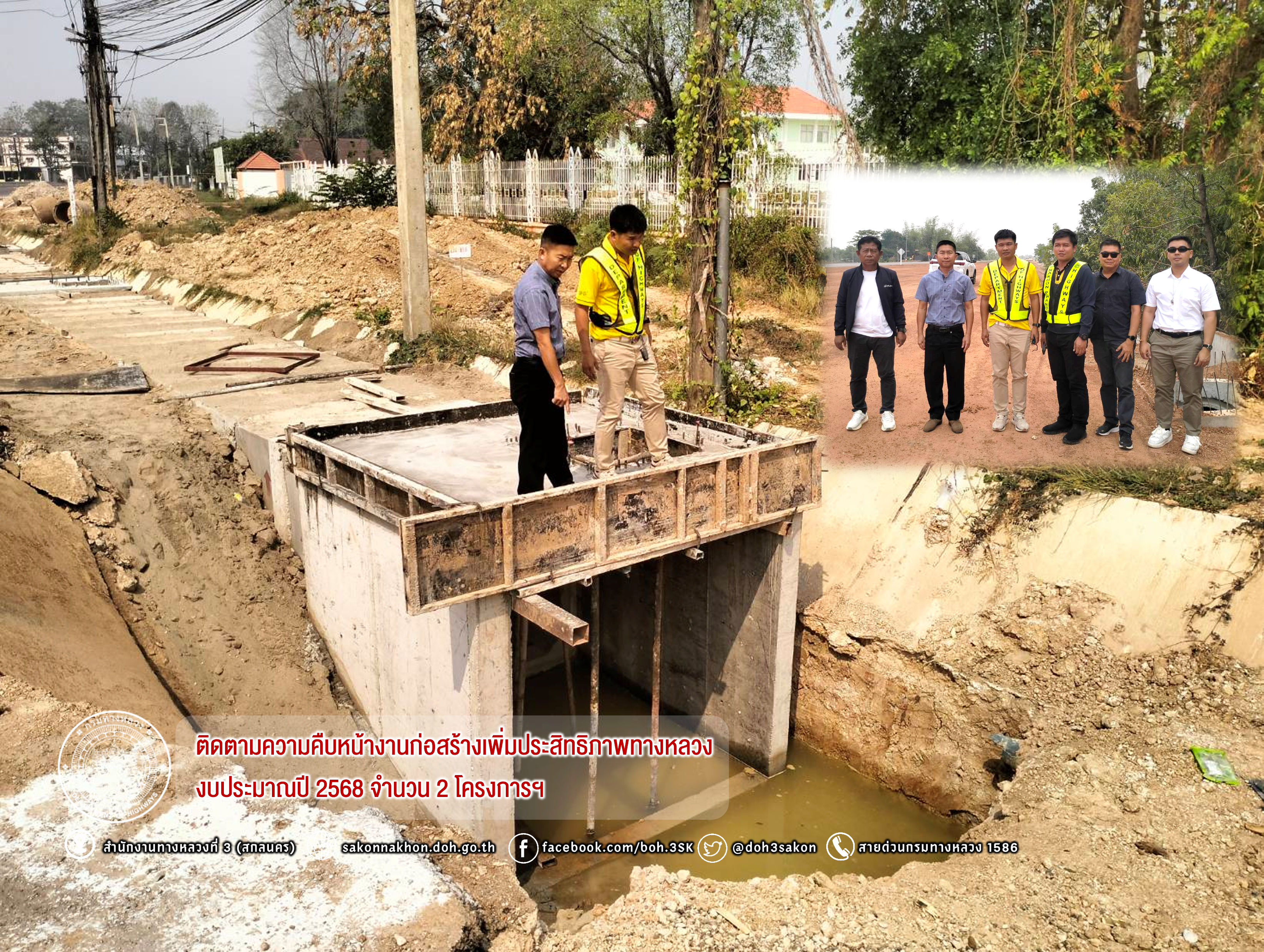 2.งานเพิ่มช่องจราจร ทางหลวงหมายเลข 223 ตอน นาแก-บ้านต้อง ระหว่าง กม.46.278.650 - กม.47+700 ปริมาณ 1 แห่ง (1.421 กม.) วงเงิน 49,936,000 บาท มีบริษัท ซอยส์ซัพพอร์ตติ้ง จำกัด เป็นผู้รับจ้าง (ตรวจรับงานงวดที่ 1) เพื่อให้ได้ตามแบบมาตรฐานของกรมทางหลวง และ สัญญาที่ นพ.42/2568โครงการก่อสร้างทางหลวงผ่านย่านชุมชน เพื่อให้ได้ตามแบบมาตรฐานของกรมทางหลวง ควบคุมการก่อสร้างโดยนายวิริยะ ปากดีสี วิศวกรโยธาปฏิบัติการ นายช่างผู้ควบคุมงานก่อสร้าง ส่วนควบคุมงานก่อสร้างทาง สำนักงานทางหลวงที่ 3 (สกลนคร)