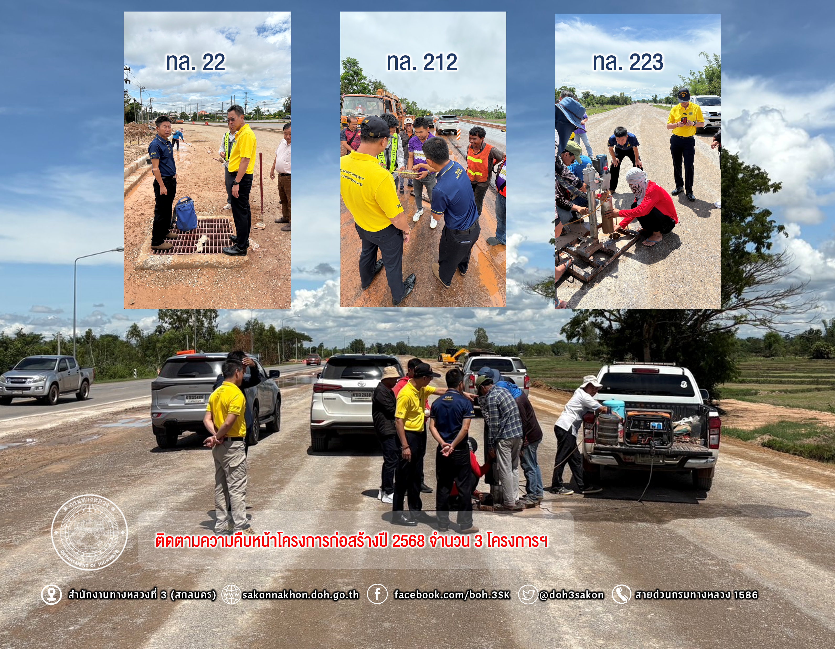 เพื่อให้ได้ตามแบบมาตรฐานของกรมทางหลวง ทั้ง 3 โครงการฯ ควบคุมการก่อสร้างโดยนายวิริยะ ปากดีสี วิศวกรโยธาปฏิบัติการ นายช่างผู้ควบคุมงานก่อสร้าง ส่วนควบคุมงานก่อสร้างทาง สำนักงานทางหลวงที่ 3 (สกลนคร)