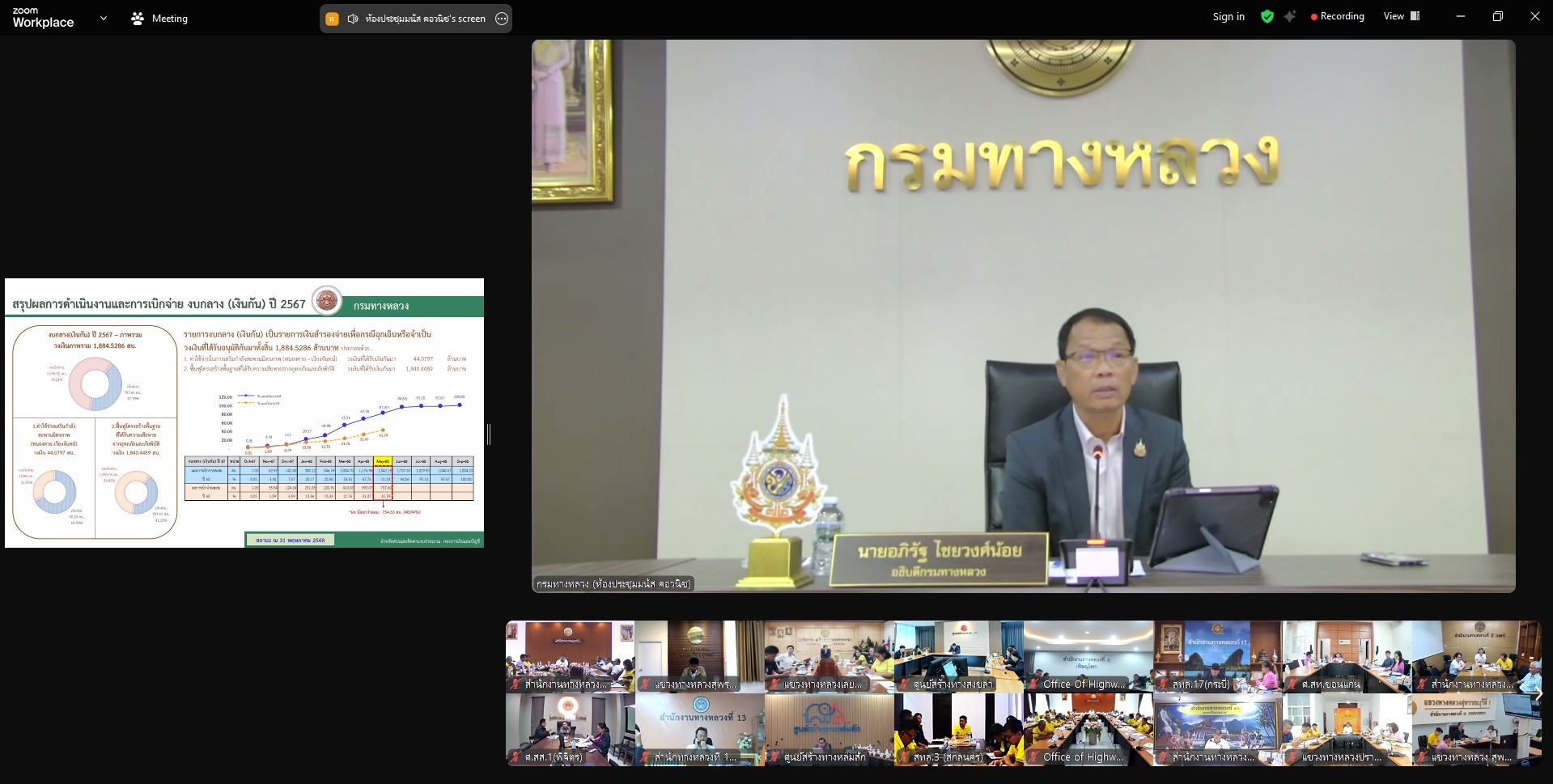 วันที่ 10 มิถุนายน 2568 นายชัยธวัช พรหมวิชัย ผู้อำนวยการสำนักงานทางหลวงที่ 3 พร้อมด้วยผู้อำนวยการแขวงทางหลวงในสังกัด, ผู้อำนวยการส่วน/ฝ่าย หัวหน้างาน และเจ้าหน้าที่ที่เกี่ยวข้อง เข้าร่วมประชุมผู้บริหารกรมทางหลวง ประจำเดือนมิถุนายน 2568 ครั้งที่ 6/2568 เพื่อติดตามผลการเบิกจ่ายงบประมาณรายจ่าย ประจำเดือนพฤษภาคม 2568 และติดตามสถานะความคืบหน้าโครงการก่อสร้างขนาดใหญ่ ณ ห้องประชุมชั้น 2 อาคารหลังใหม่ สำนักงานทางหลวงที่ 3 (สกลนคร)