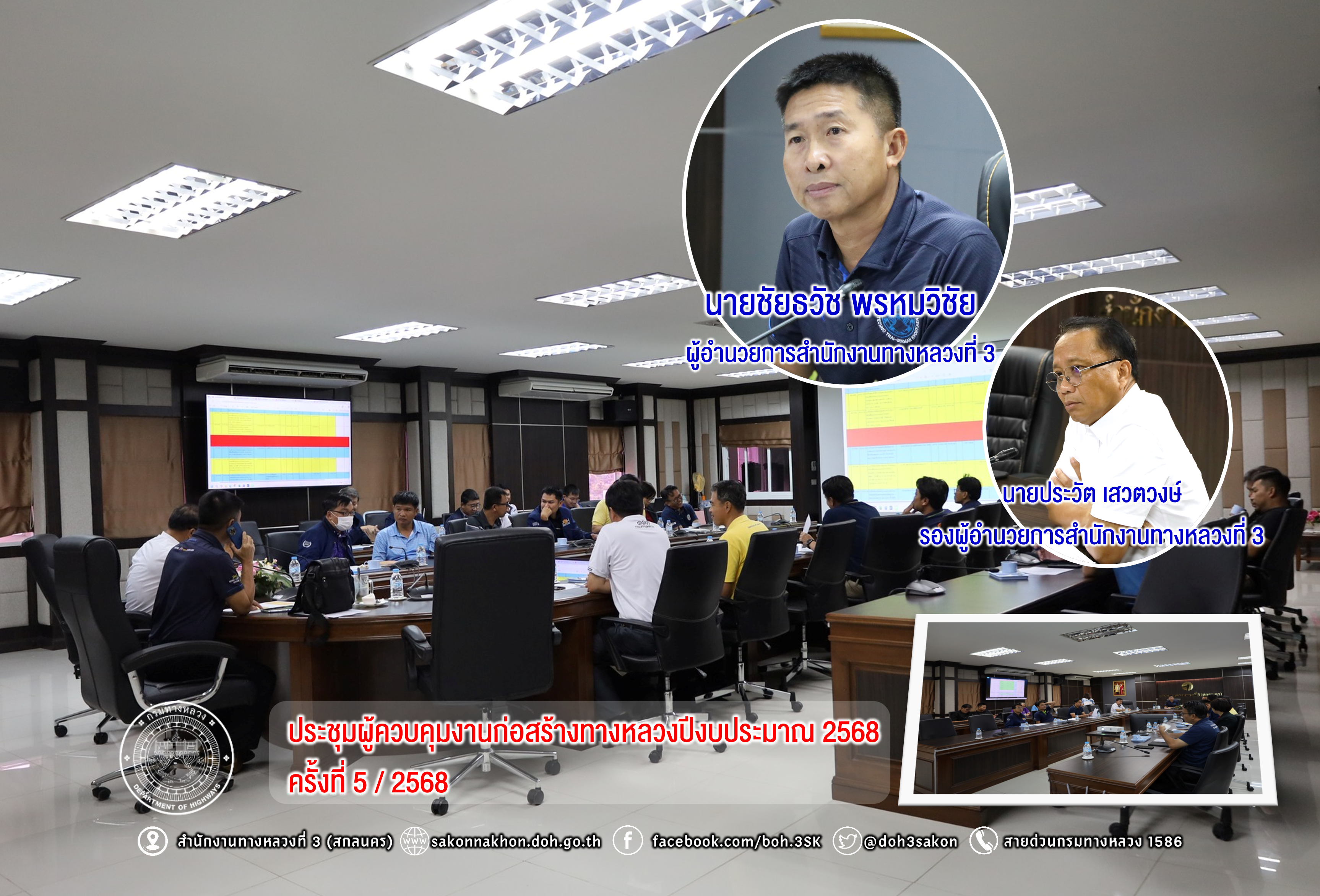 วันที่ 13 มิถุนายน 2568 เวลา 10.00 น.นายชัยธวัช พรหมวิชัย ผู้อำนวยการสำนักงานทางหลวงที่ 3 เป็นประธาน ประชุมผู้ควบคุมงานก่อสร้างทางหลวงปีงบประมาณ 2568 ครั้งที่ 5/2568 โดยมี นายประวัติ เสวตวงษ์ รองผู้อำนวยการสำนักงานทางหลวงที่ 3 ,นายชินนพัทธ์ มุลทาทอง ผู้อำนวยการส่วนแผนงาน, นายพงษ์ศักดิ์ อาจลา ผู้อำนวยการส่วนควบคุมงานก่อสร้าง, นายเอกชัย แสนสงค์ ผู้อำนวยการส่วนตรวจสอบและวิเคราะห์ทางวิศวกรรม และวิศวกรโยธา/นายช่างโยธา ส่วนแผนงาน ส่วนควบคุมงานก่อสร้างทาง ส่วนตรวจสอบและวิเคราะห์ทางวิศวกรรม ส่วนอำนวยความปลอดภัย และผู้ช่วยผู้ควบคุมงาน เข้าร่วมประชุมเพื่อติดตามความคืบหน้าของโครงการก่อสร้างทางปีงบประมาณ 2568 ณ ห้องประชุมทวีพัฒน์ ตินะมาส ชั้น 3 (อาคารหลังใหม่)