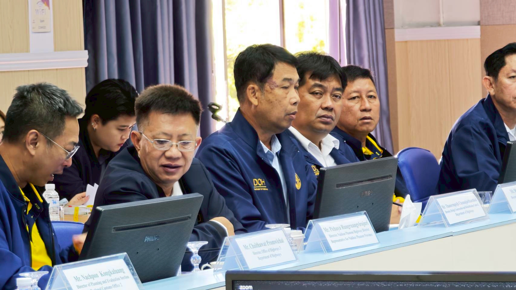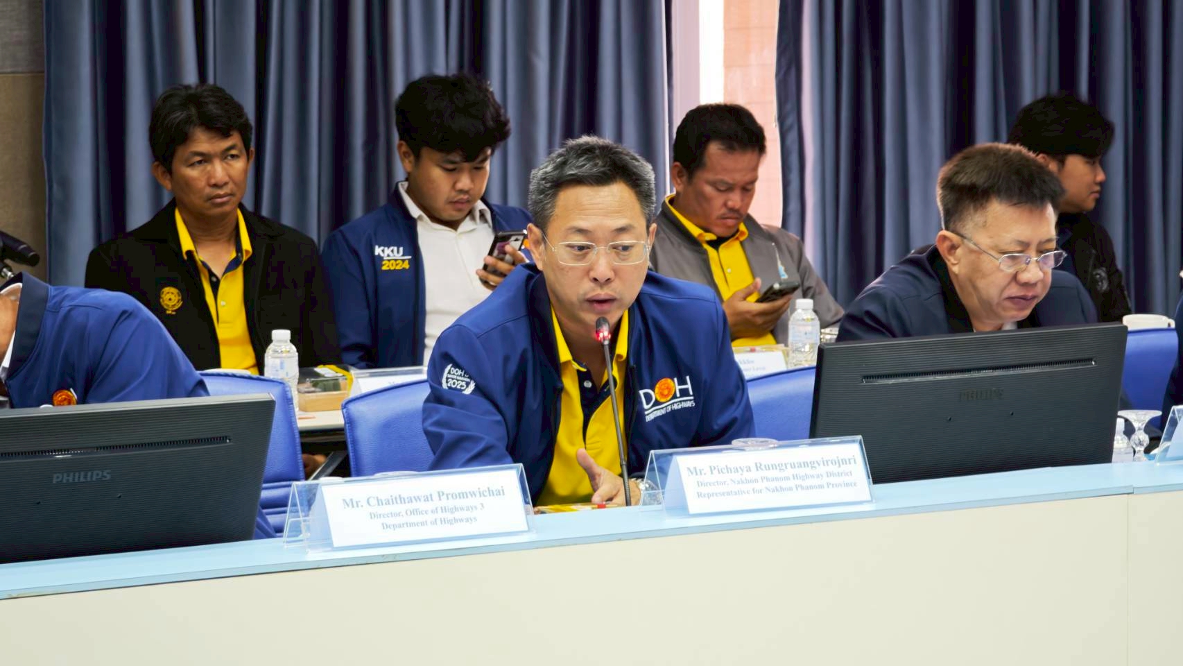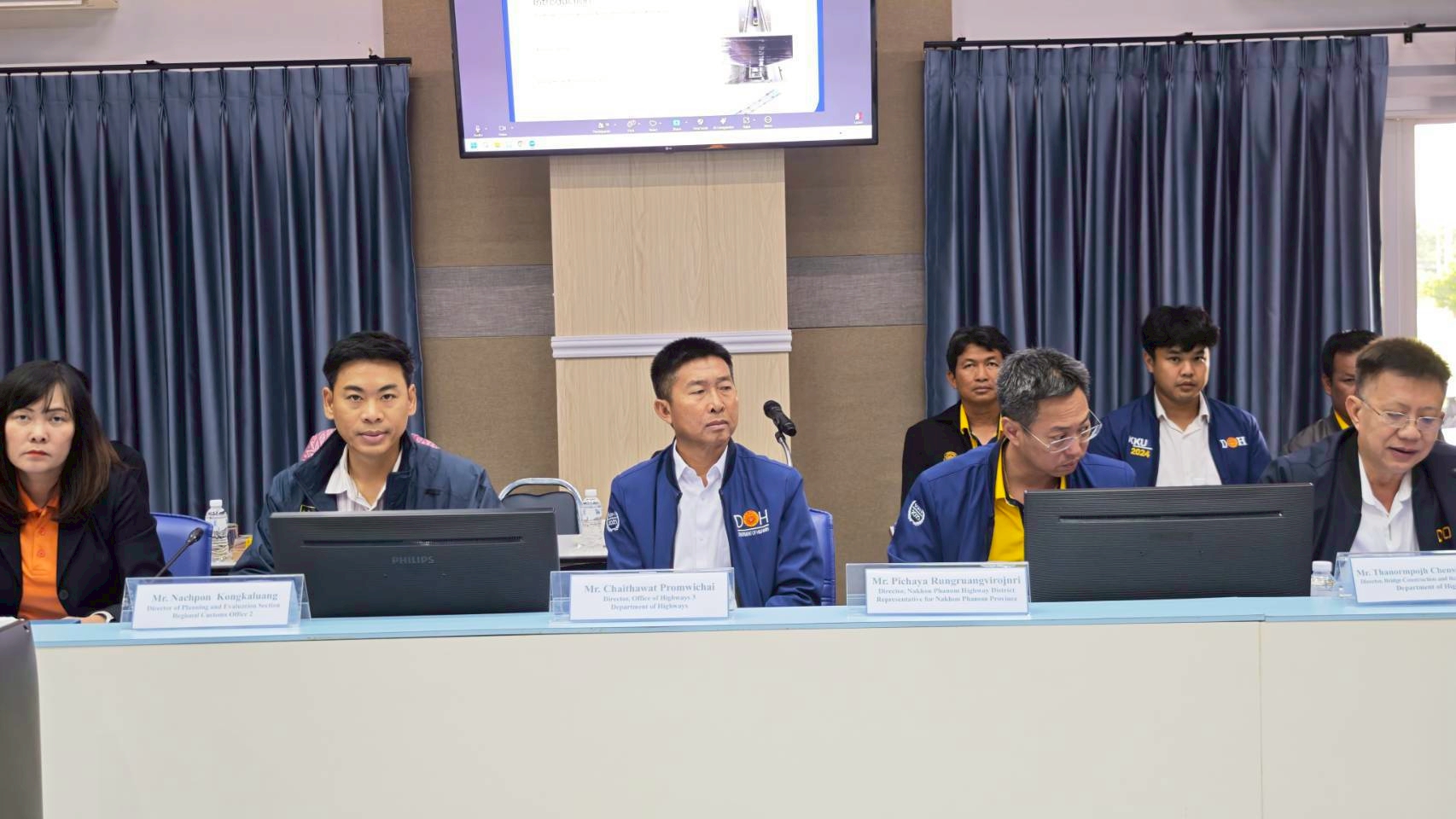 วันที่ 8 กรกฎาคม 2568 นายธานินทร์ ริรัตนพงษ์ วิศวกรใหญ่ด้านวางแผนและวางโครงการก่อสร้าง กรมทางหลวง เป็นประธานการประชุมฝ่ายไทยและนายอาดนาดา บูลม รองอธิบดีกรมขัวทาง สปป.ลาว เป็นประธานการประชุมฝ่ายลาว ในการประชุมคณะกรรมาธิการบริหารและบำรุงรักษาสะพานมิตรภาพไทย - ลาว แห่งที่ 1 – 4 โดยมีนายธันวิน สวัสดิศานต์ ผู้อำนวยการสำนักบริหารโครงการทางหลวงระหว่างประเทศ นายชัยธวัช พรหมวิชัย ผู้อำนวยการสำนักงานทางหลวงที่ 3 นายมะนูญ ชูตรี ผู้อำนวยการแขวงทางหลวงหนองคาย และนายพิชญ รุ่งเรืองวิโรจน์ ผู้อำนวยการแขวงทางหลวงนครพนม พร้อมด้วยคณะกรรมาธิการฯ ฝ่ายไทยและฝ่ายลาว และเจ้าหน้าที่ที่เกี่ยวข้องเข้าร่วมประชุม ณ ห้องประชุมอาคารอเนกประสงค์ หน่วยบำรุงรักษาสะพานมิตรภาพ (หนองคาย - เวียงจันทน์) แขวงทางหลวงหนองคาย กรมทางหลวง จังหวัดหนองคาย และผ่านสื่ออิเล็กทรอนิกส์ (Zoom Video Conference)
