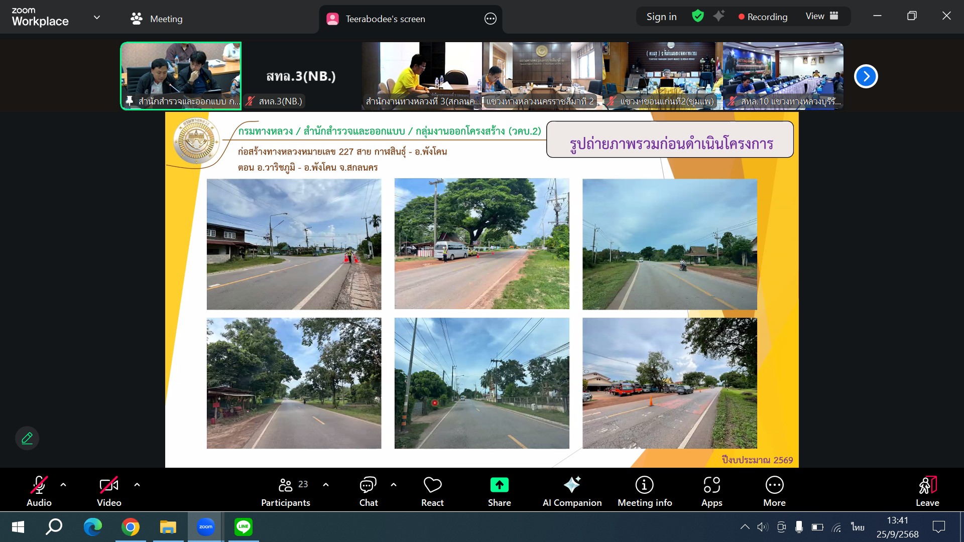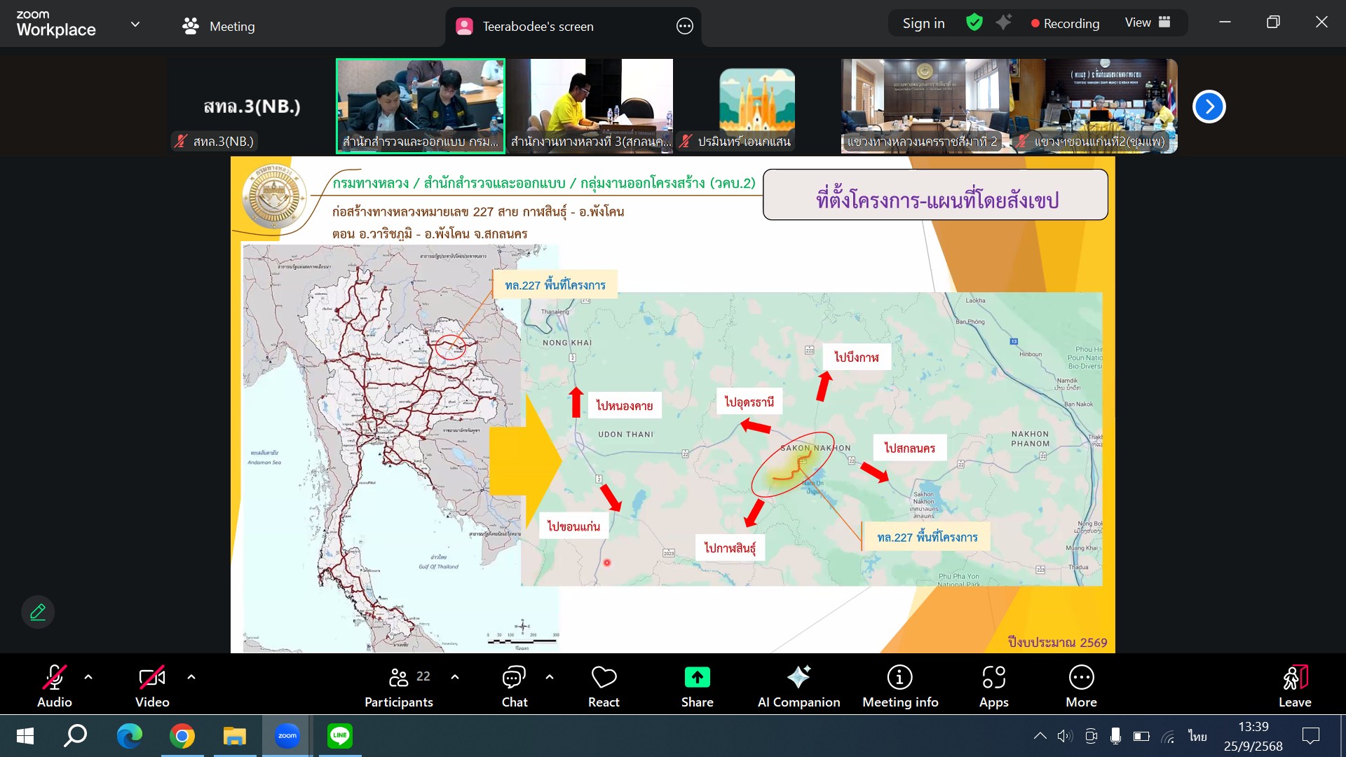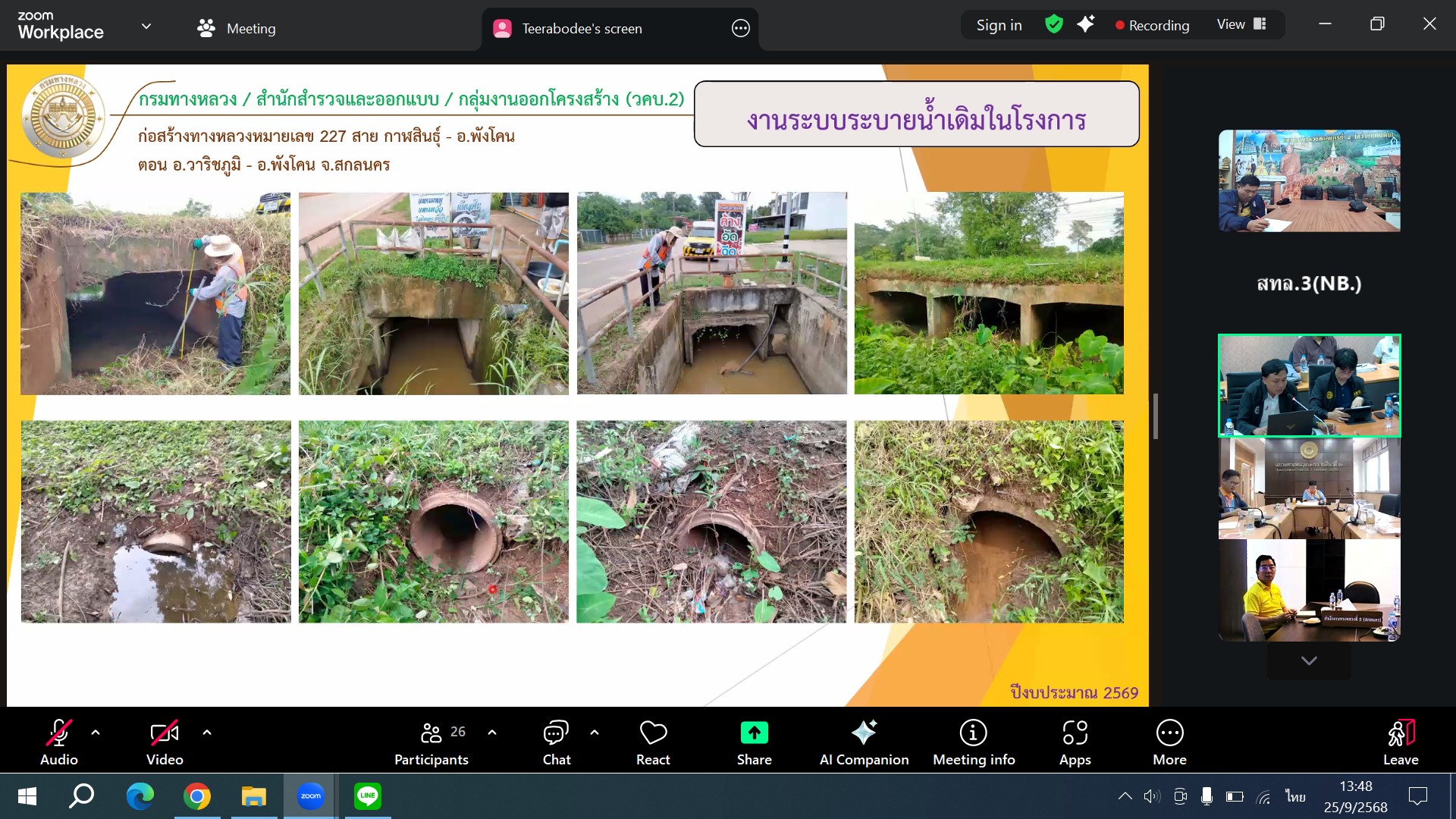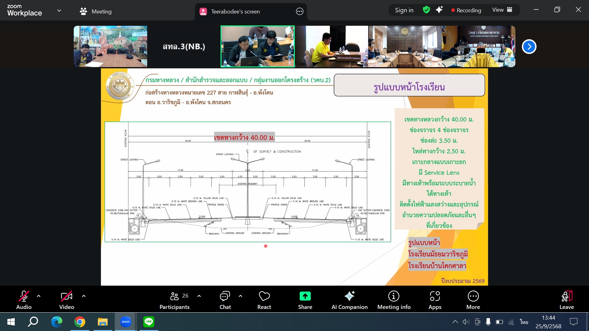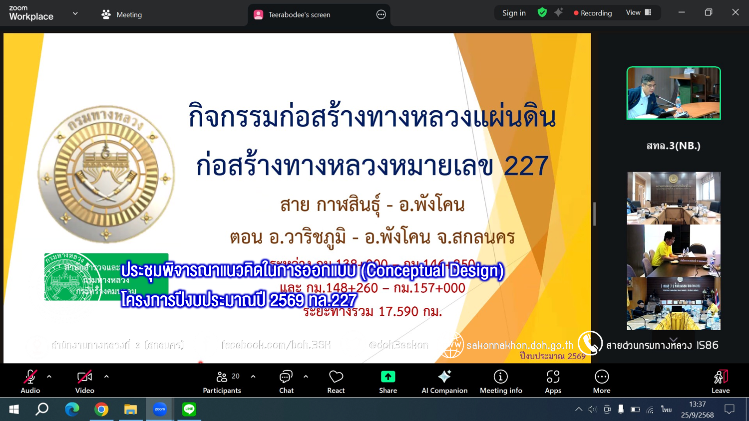 ประชุมผ่านสื่ออิเล็กทรอนิกส์ โปรแกรม Zoom ณ ห้องประชุมชั้น 2 อาคารหลังใหม่ สำนักงานทางหลวงที่ 3 (สกลนคร) โดยมี นายสิทธิชัย บุญสะอาด วิศวกรใหญ่ด้านสำรวจและออกแบบ เป็นประธานฯ