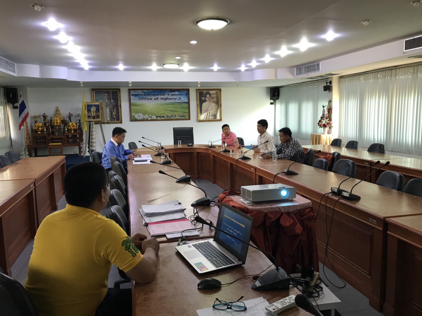 วันที่ 12 กุมภาพันธ์ 2562 เวลา10.30น. สำนักงานทางหลวงที่ 3 (สกลนคร) ประชุมแก้ไขปรับแบบก่อสร้าง ตามสัญญาที่ นค8/2562 ลว.18 ตุลาคม 2561 โดยมีนายชัยธวัช พรหมวิชัย รองผู้อำนวยการสำนักงานทางหลวงที่ 3 เป็นประธานกรรมการตรวจการจ้าง งานจ้างเหมาทำการปรับปรุงทางหลวงผ่านย่านชุมชน ทางหลวงหมายเลข 211CS.0102 ตอน ศรีเชียงใหม่ – ห้วยศรีดา ระหว่าง กม.51+000-52+300 ปริมาณงาน 1 แห่ง วงเงิน 24,920,000บาท มี หจก.เอสเอ็ม.ซี.การโยธาเป็นผู้รับจ้าง สัญญาเริ่มวันที่29 ตุลาคม2562 สิ้นสุดสัญญาวันที่17มีนาคม 2562 รวมเวลาทำการ 150 วัน เนื่องจากโครงการฯ ในช่วงดำเนินการ กม.51+000 – 52+900 ด้านซ้ายทาง มีร่องระบายน้ำ แบบดาดคอนกรีต กว้าง 3.60 ลึก 1.00 เมตร ของกรมชลประทาน ห่างจากศูนย์กลางถนน 11.30 เมตร อยู่ในแนวการขยายถนนทำให้ไม่สามารถก่อสร้างได้ตามรูปแบบได้ เพื่อให้โครงการฯสามารถก่อสร้างตามรูปแบบเดิม จึงขออนุมัติปรับแนวก่อสร้าง(Center line) จากแนวเดิมโดยเป็นไปตามหลักเกณฑ์การแก้ไขรูปแบบและปริมาณงานในงานจ้างเหมาไม่ถือเป็นการแก้ไขแบบที่จะต้องแก้ไขเปลี่ยนแปลงลงสัญญา และขอแก้ไขจุกกลับรถ กม.51+700จากรูปแบบเดิมแบบเต็มรูปแบบ เป็นแบบไม่เต็มรูปแบบ(ไม่ทำการขยายผิวจราจร) เนื่องจากติดร่องระบายน้ำของกรมชลประทาน ในการประชุมครั้งนี้มีคณะกรรมการตรวจการจ้างได้แก่ นายพงษ์ศักดิ์ อาจลา (วบ.ทล.3) ,นายมนูญ ชูตรี รองผู้อำนวยการแขวงทางหลวงหนองคาย(ฝ่ายปฏิบัติงาน),นายสมชาย สุทธิบาล วิศวกรโยธาชำนาญงาน(หน.แผนงานแขวงฯหนองคาย,นายสนธิ ศรีสุข นายช่างโยธาชำนาญงาน เป็นผู้ควบคุมการก่อสร้าง ,นางสำนวน ทำเนาว์ หัวหน้าพัสดุและสัญญา และตัวแทนจากผู้รับจ้าง ร่วมประชุม ณ ห้องประชุมทวีพัฒน์ ตินะมาส