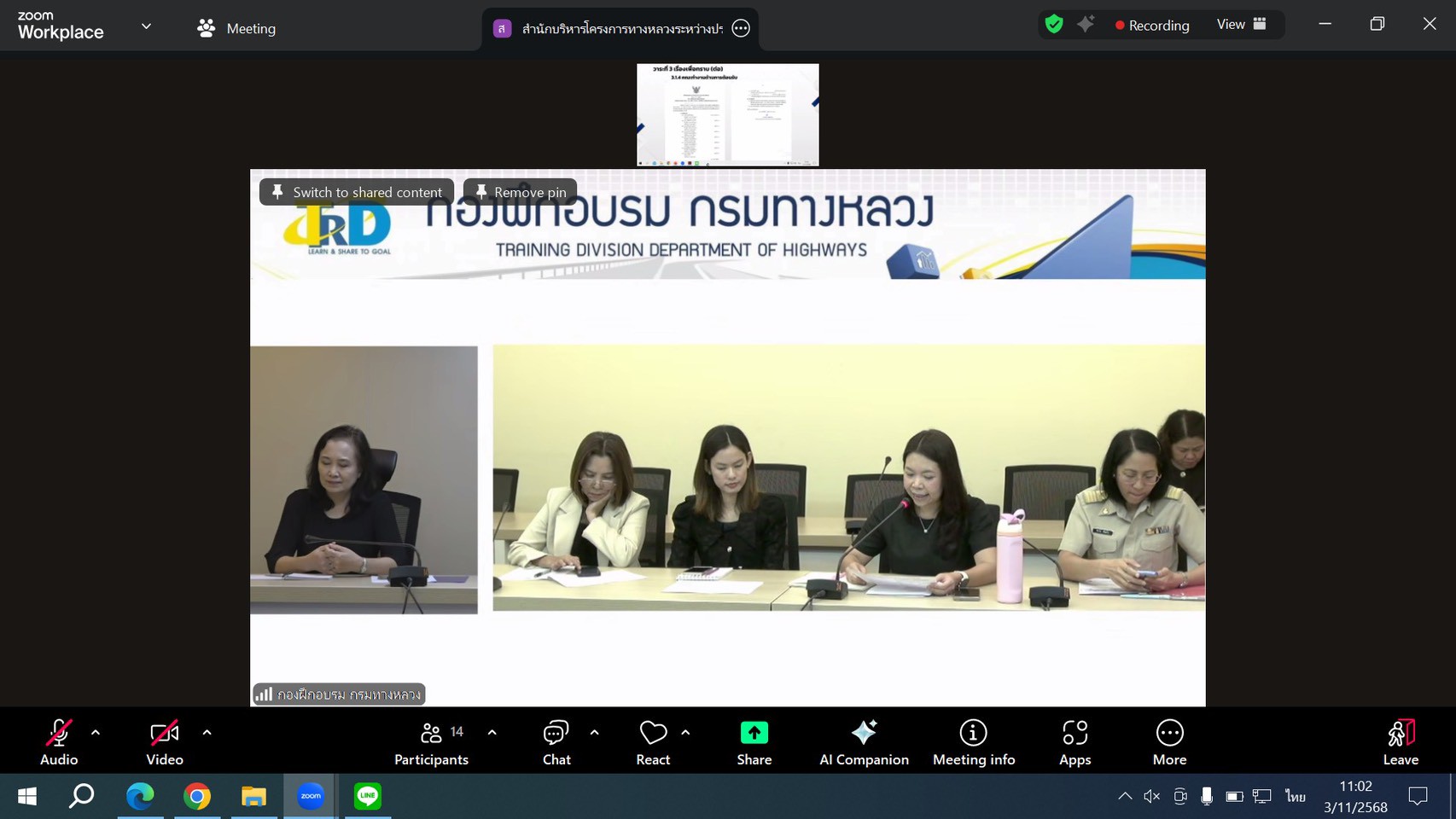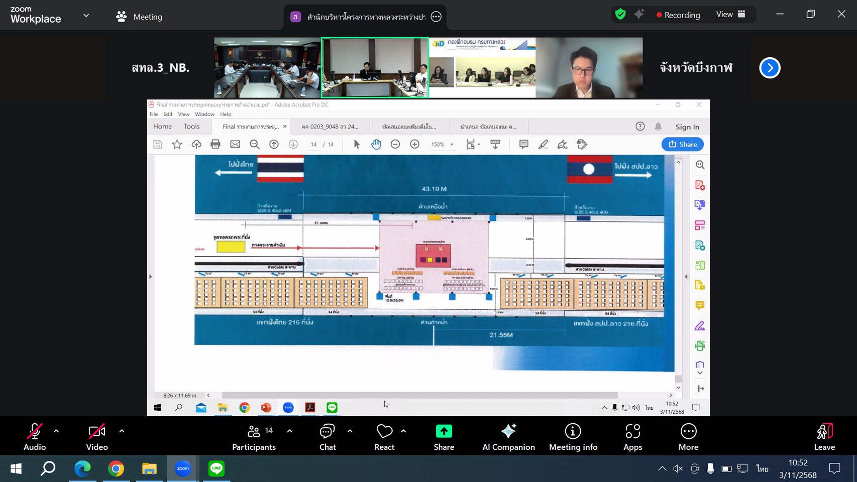 วันที่ 3 พฤศจิกายน 2568 เวลา 10.00 น. นายชัยธวัช พรหมวิชัย ผู้อำนวยการสำนักงานทางหลวงที่ 3 พร้อมด้วย นายเดชา พรวนพิทักษ์ รองผู้อำนวยการสำนักงานทางหลวงที่ 3 ตำแหน่งที่ 1, นายประวัติ เสวตวงษ์ รองผู้อำนวยการสำนักงานทางหลวงที่ 3 ตำแหน่งที่ 2 ,นางนภาพิศ สุวรรณศรี ผู้อำนวยการส่วนบริหาร,นายชินนพัทธ์ มุลทาทอง ผู้อำนวยการส่วนแผนงาน, นายหนูกาญ เจริญไชย ผู้อำนวยการส่วนกฎหมายและกรรมสิทธิ์ที่ดิน, นิติกร และวิศวกรโยธา ส่วนแผนงาน ได้เข้าร่วมประชุมคณะอนุกรรมการด้านอำนวยการและประชาสัมพันธ์สะพานมิตรภาพไทย - ลาว แห่งที่ 5 (บึงกาฬ - บอลิคำไซ) ครั้งที่ 2 ผ่านสื่ออิเล็กทรอนิกส์ (Zoom Video Conference) ณ ห้องประชุมทวีพัฒน์ ตินะมาส ชั้น 3 โดยมี นายธันวิน สวัสดิศานต์ ผู้อำนวยการสำนักบริหารโครงการทางหลวงระหว่างประเทศ เป็นประธานฯ