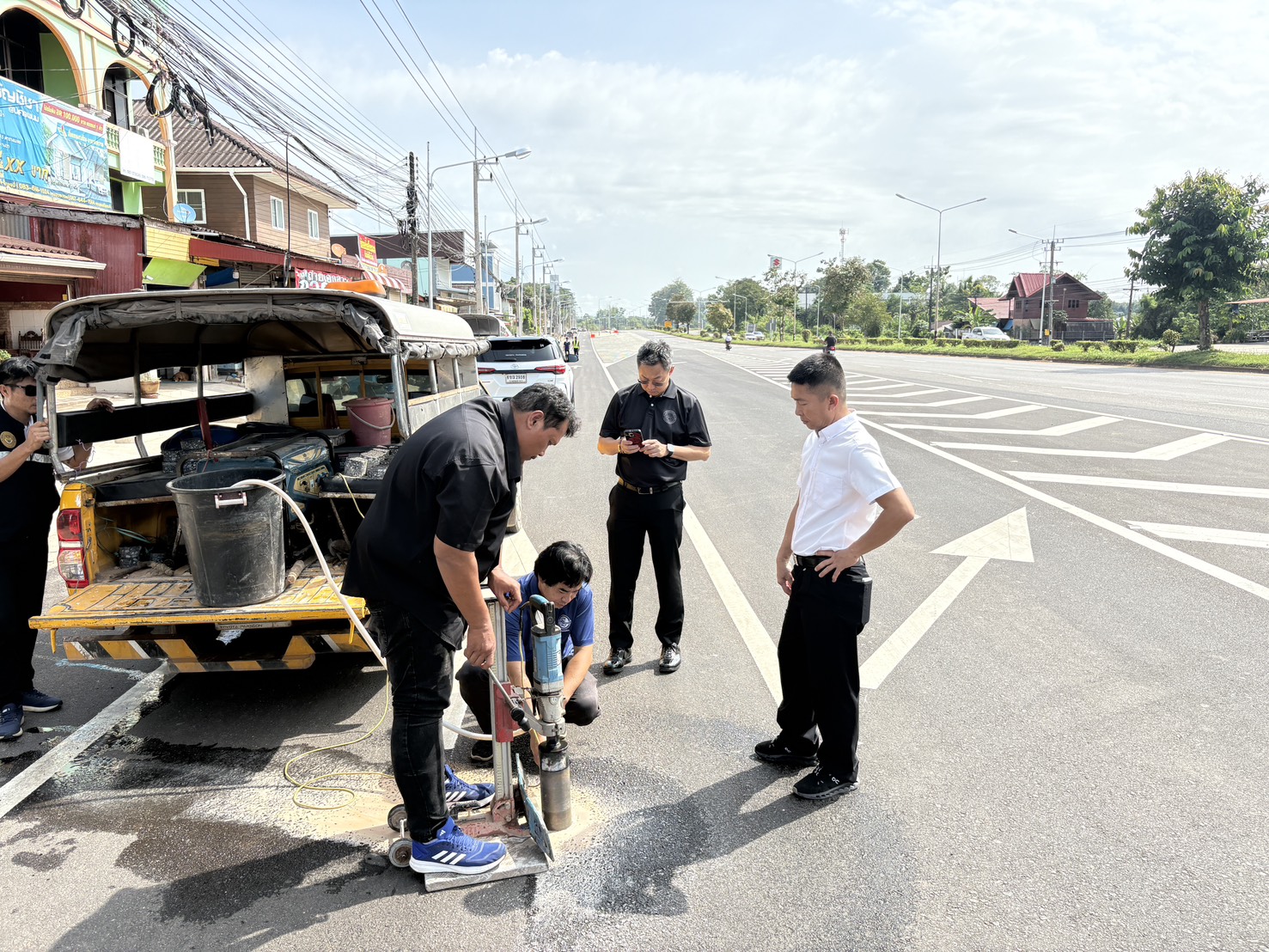พร้อมด้วยนายพิชญ รุ่งเรืองวิโรจน์ ผู้อำนวยการแขวงทางหลวงนครพนม และคณะกรรมการตรวจรับพัสดุ ลงพื้นที่ตรวจรับงานก่อสร้างทางหลวงผ่านย่านชุมชน ทางหลวงหมายเลข 22 ตอน กุรุคุ - นครพนม ระหว่าง กม.237+462 LT. - กม.238+850 LT. ปริมาณงาน 1 แห่ง (3.388 กม.) วงเงิน 59,990,000 บาท มีบริษัท เค.อาร์.ซี.เอ็นจีเนียริ่ง จำกัด เป็นผู้รับจ้าง เพื่อให้ได้ตามแบบมาตรฐานของกรมทางหลวง