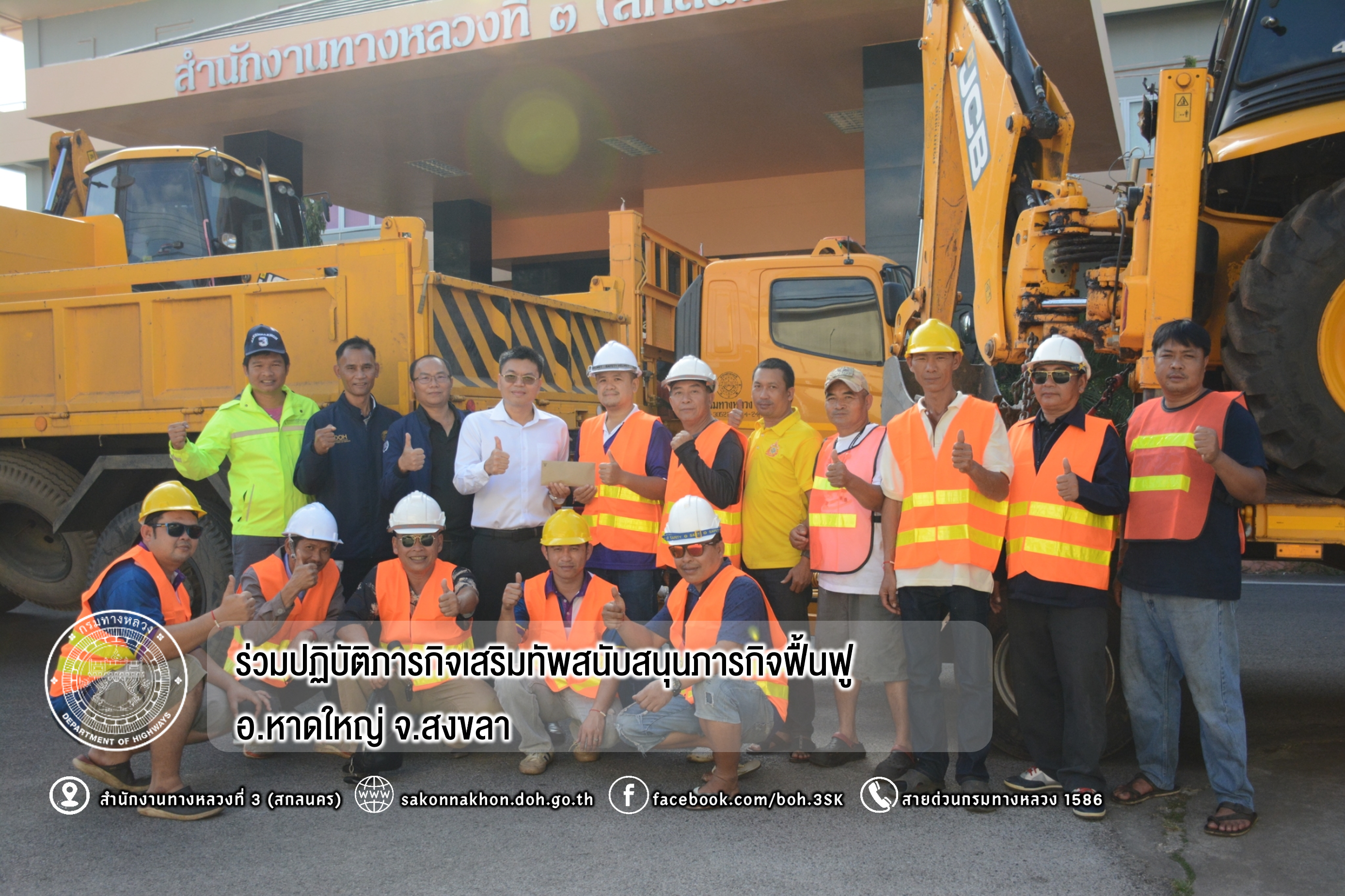 วันที่ 6 ธันวาคม 2568 สำนักงานทาหลวงที่ 3 (สกลนคร) พร้อมแขวงทางหลวงในสังกัด ทั้งกำลังคน เครื่องจักร ร่วมปฏิบัติภารกิจเสริมทัพสนับสนุนภารกิจฟื้นฟูเมืองหาดใหญ่ หลังสถานการณ์อุทกภัยคลี่คลาย เร่งทำความสะอาด ขนย้ายขยะ โคลน ให้สามารถเข้าถึงพื้นที่ได้กว้างขึ้น เพิ่มประสิทธิภาพการเก็บกู้ ขนย้าย และการบูรณาการร่วมกับหน่วยงานในพื้นที่