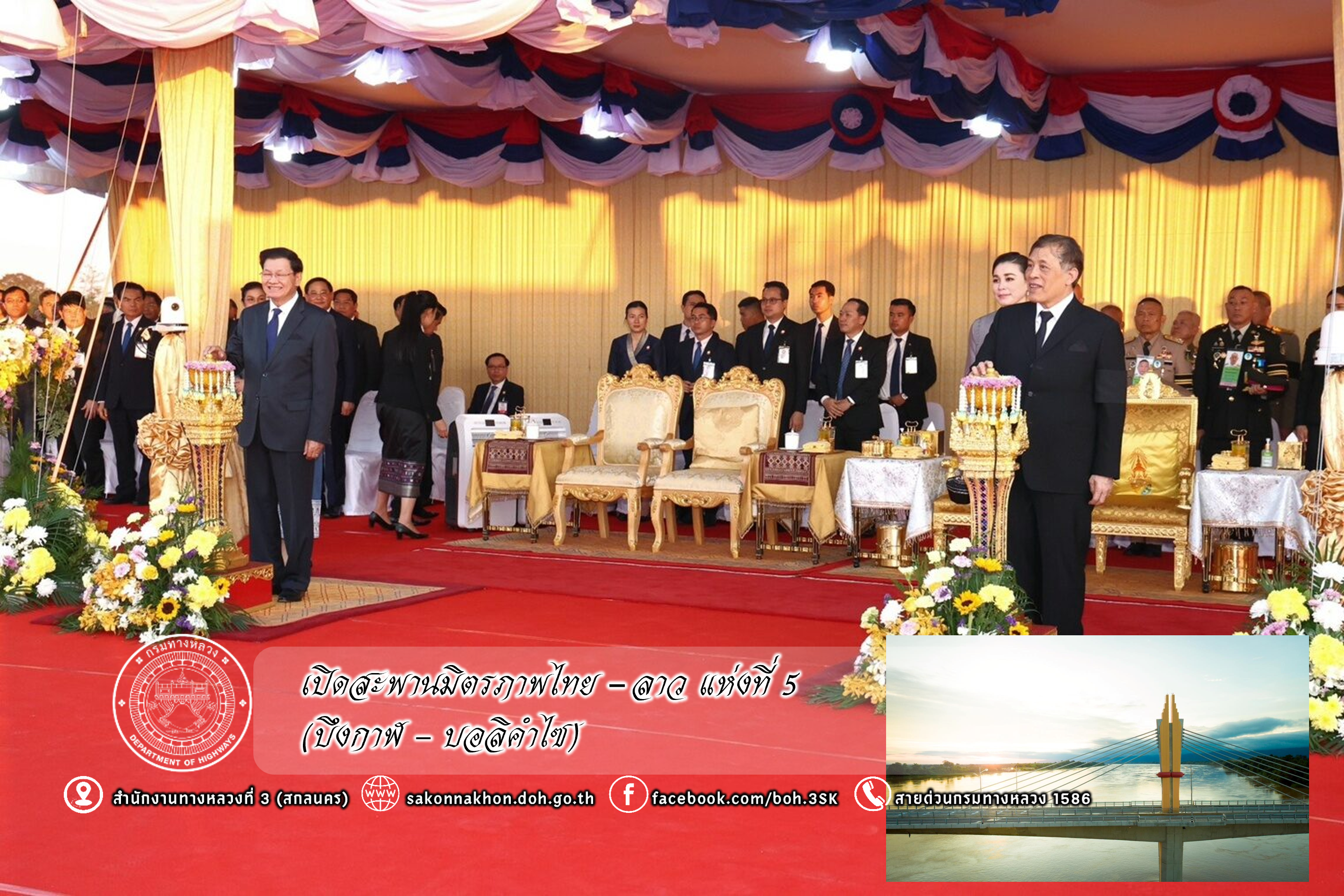 กรมทางหลวงเปิดใช้สะพานมิตรภาพไทย - ลาว แห่งที่ 5 (บึงกาฬ - บอลิคำไซ) เชื่อมโยงเศรษฐกิจและด่านพรมแดนถาวร เริ่ม 27 ธันวาคมนี้
