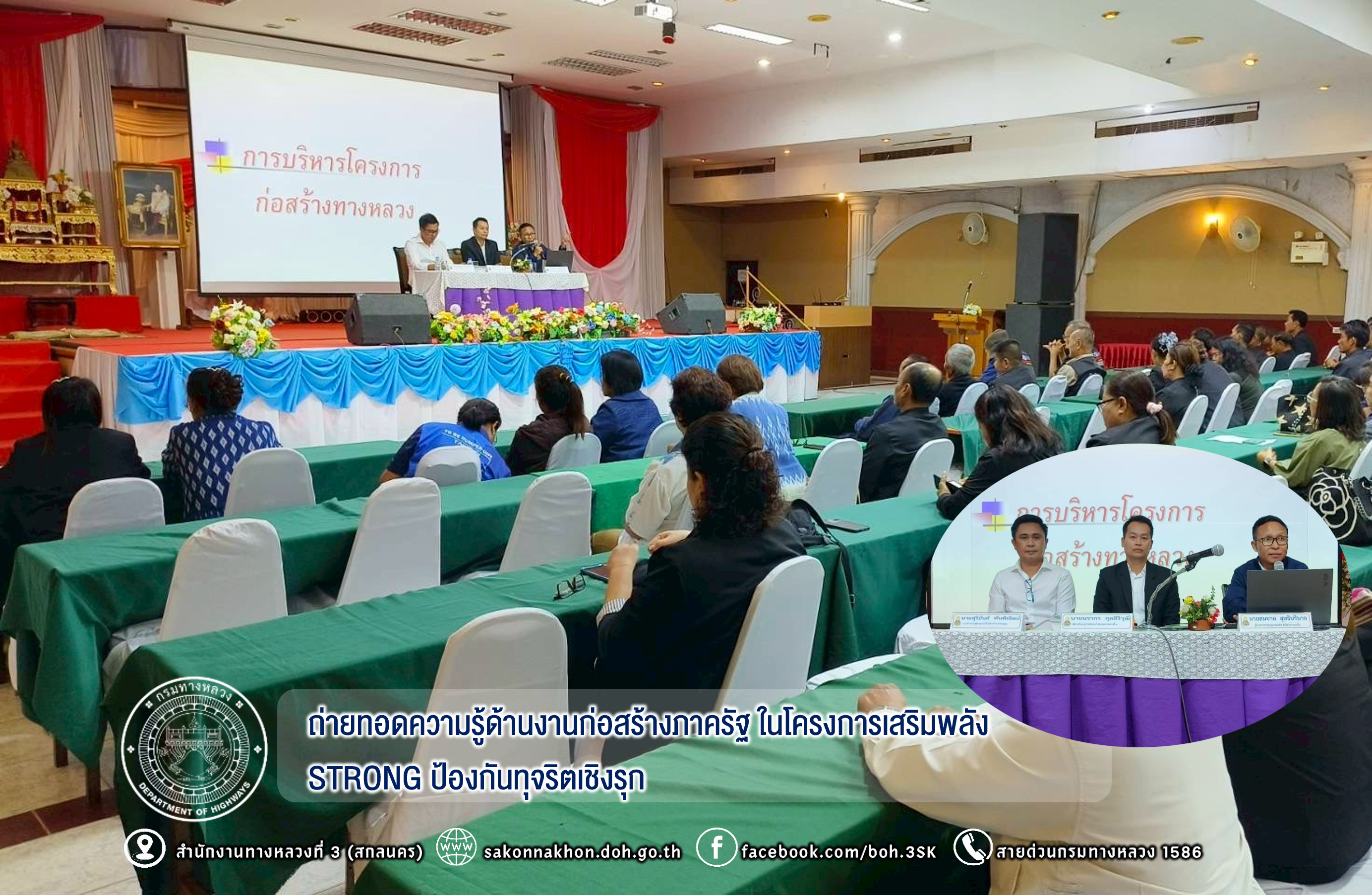 สำนักงานทางหลวงที่ 3 ร่วมถ่ายทอดความรู้ด้านงานก่อสร้างภาครัฐ ในโครงการเสริมพลัง STRONG ป้องกันทุจริตเชิงรุก ณ จังหวัดสกลนคร