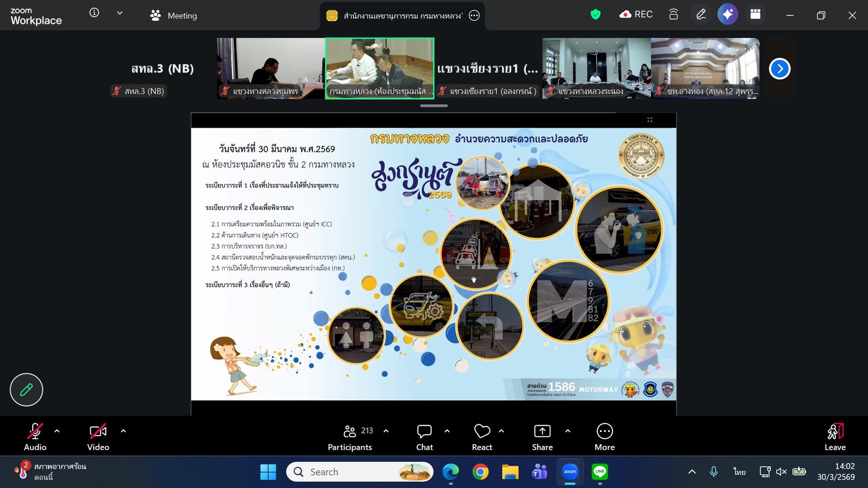 นายชัยธวัช พรหมวิชัย ผู้อำนวยการสำนักงานทางหลวงที่ 3 พร้อมด้วย นายชินนพัทธ์ มุลทาทอง ผู้อำนวยการส่วนแผนงาน และเจ้าหน้าส่วนเทคโนโลยีสารสนเทศ เข้าร่วมประชุมการเตรียมความพร้อมการอำนวยความสะดวกและปลอดภัยช่วงเทศกาลสงกรานต์ปี 2569