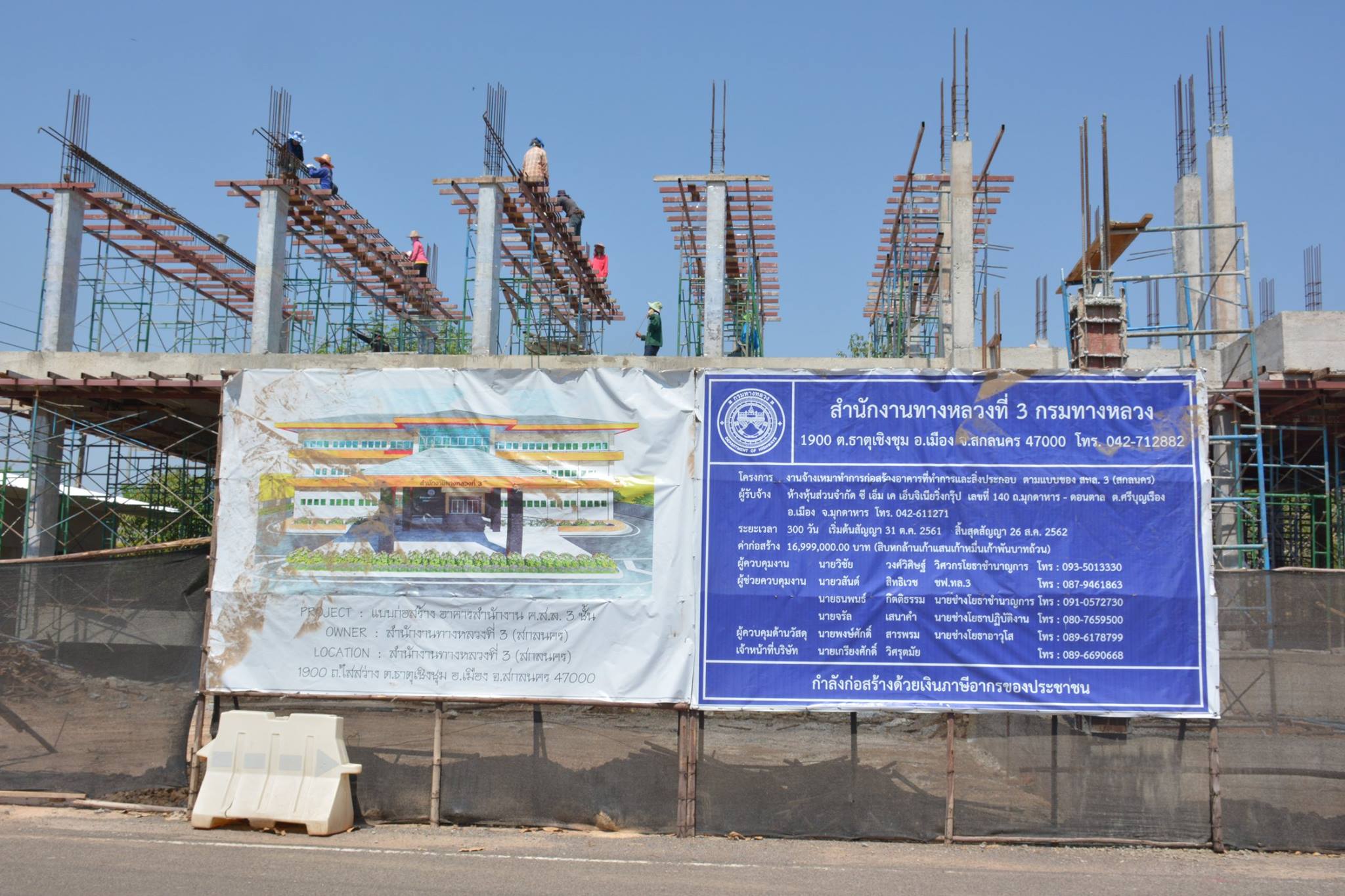 วันที่ 24 เมษายน 2562 เวลา 10.00 น. สำนักงานทางหลวงที่ 3 (สกลนคร) นำโดย นายอนุชา ทิพย์อุทัย ผู้อำนวยการส่วนวางแผน พร้อมด้วยคณะกรรมการตรวจการจ้างมีรายชื่อดังนี้ นายจักรพงษ์ ธรรมทินโน วิศวกรชำนาญการ ,นายรณฤทธิ์ ภูผิวเดือน ผู้อำนวยการส่วนควบคุมงานก่อสร้างทาง ,นายพัฒนา ไตรโยธี ผู้อำนวยการส่วนอำนวยความปลอดภัย ,นายวสันต์ สิทธิเวช ผู้อำนวยการส่วนไฟฟ้า ,นายพงษ์ศักดิ์ สารพรม ผู้ควบคุมด้านวัสดุ และนายธนพนธ์ กิตติธรรม ผู้ช่วยผู้ควบคุมงาน ร่วมตรวจรับงานจ้างเหมาการก่อสร้างสำนักงานทางหลวงที่3(สกลนคร) หลังใหม่งวดที่ 1 ทางหลวงหมายเลข 2347 ตอน ธาตุนาเวง - สกลนคร ที่ กม.5+500 วงเงิน 16,999,000 บาท ภายในบริเวณสำนักงานทางหลวงที่ 3 (สกลนคร) มีห้างหุ้นส่วนจำกัด ซี เอ็ม เค เอ็นจิเนียริ่ง กรุ๊ป เป็นผู้รับจ้าง