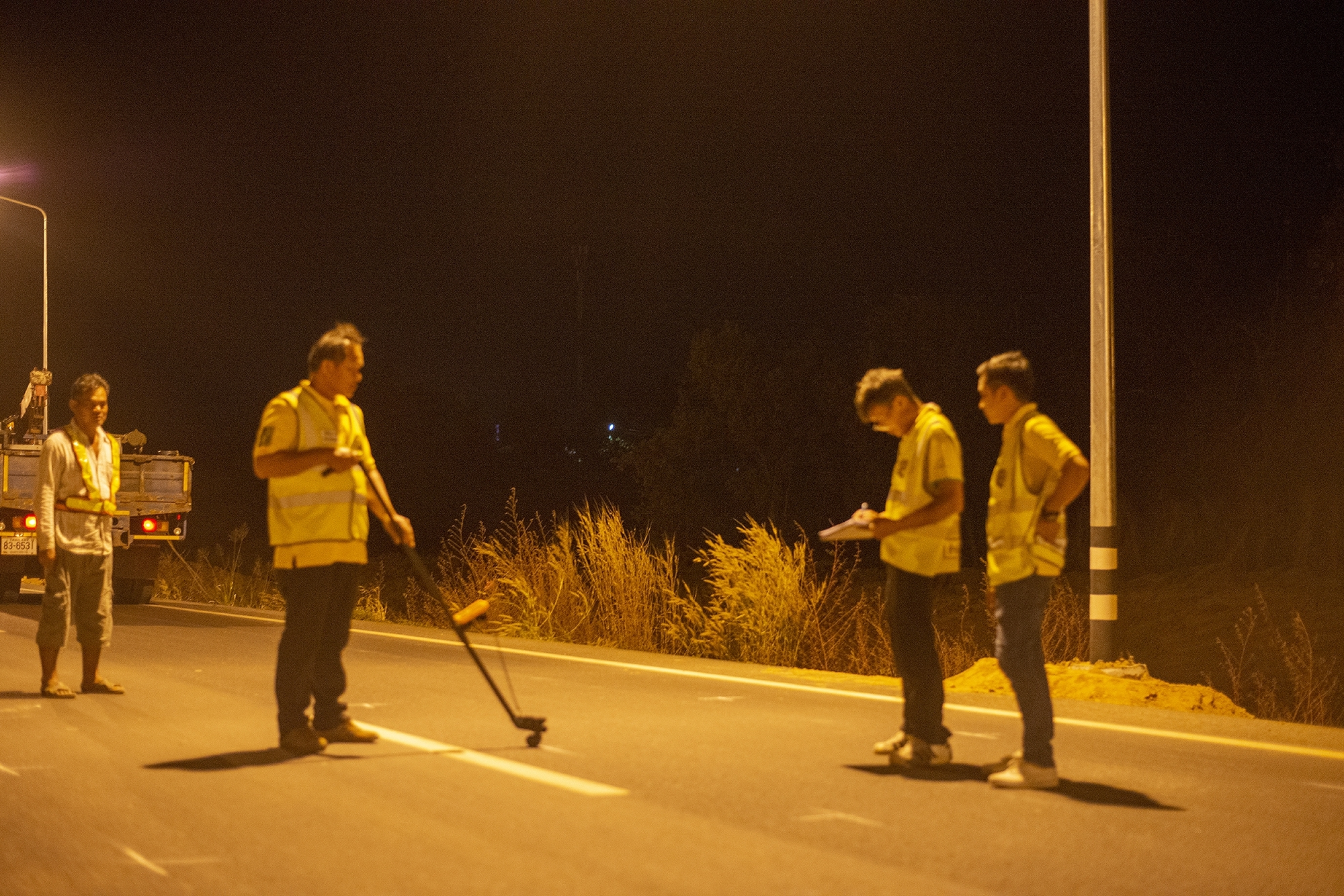 วันที่ 27 พฤศจิกายน 2562 นายวสันต์ สิทธิเวช ผู้อำนวยการส่วนไฟฟ้า นำเจ้าหน้าที่ส่วนไฟฟ้าสำนักงานทางหลวงที่ 3 (สกลนคร) ร่วมกับเจ้าหน้าที่โครงการก่อสร้างทางหมายเลข 12 สาย น.นาไคร้ - อ.คำชะอี ตอน บ.นาไคร้ - อ.หนองสูง ร่วมตรวจสอบวัดความเข้มของการส่องสว่างไฟฟ้าบนทางหลวง ระหว่าง กม.704+400 - กม.721+000 รวมปริมาณงาน 7 แห่ง โดยมีตัวแทนผู้รับจ้างร่วมตรวจสอบวัดความเข้มของการส่องสว่างไฟฟ้าในครั้งนี้