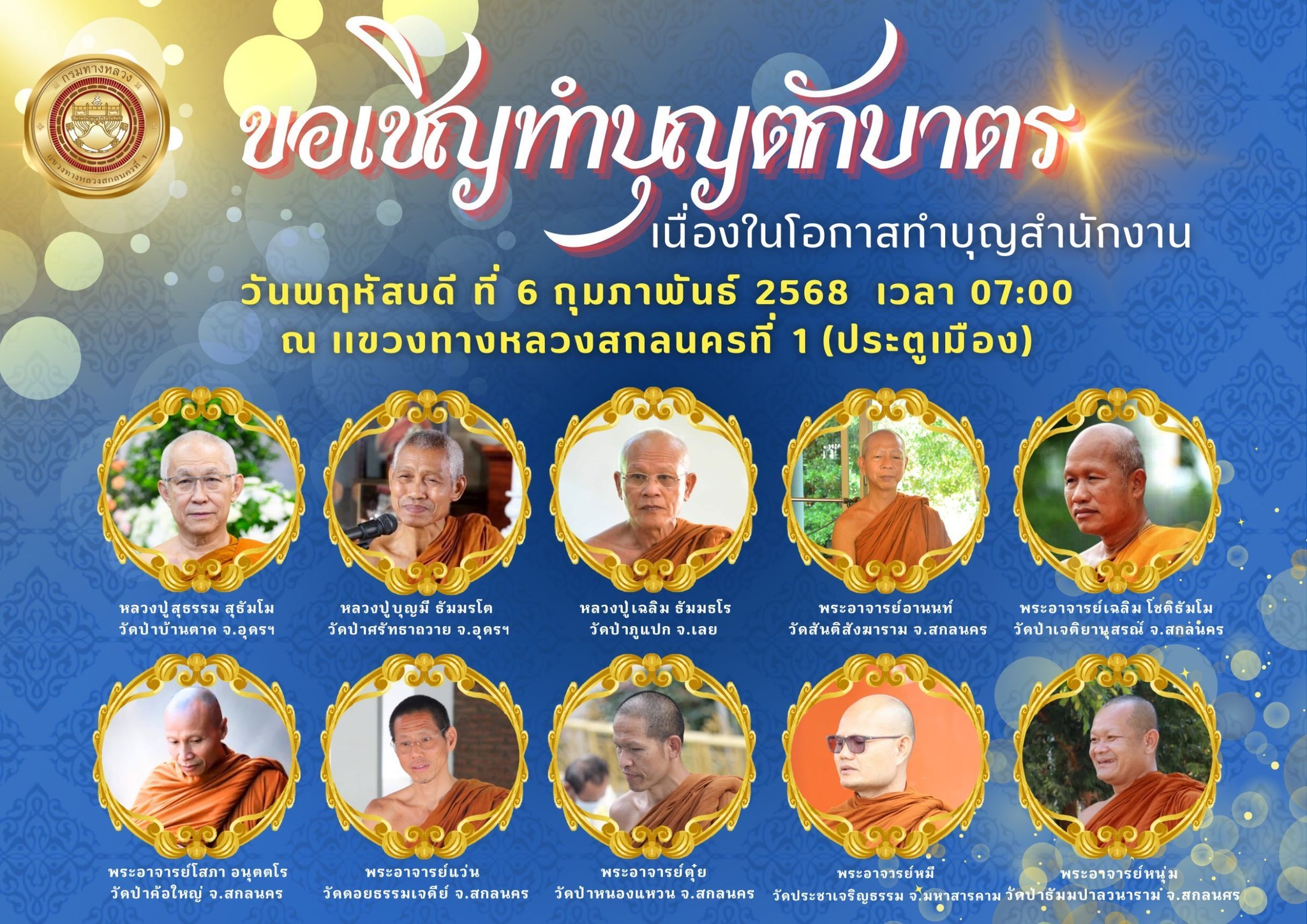 ขอเชิญร่วมใส่บาตรในโอกาสทำบุญสำนักงาน 6 กุมภาพันธ์ 2568