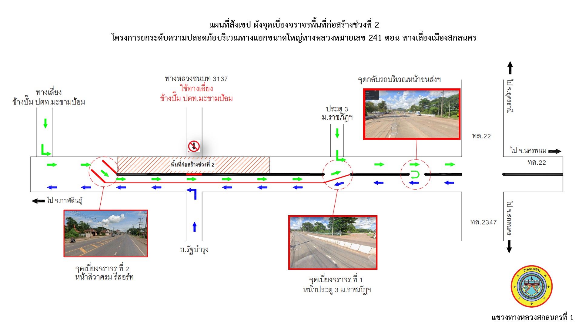 แขวงทางหลวงสกลนครที่ 1 ได้ทำการว่าจ้างงานสัญญาโครงการยกระดับความปลอดภัยบริเวณทางแยกขนาดใหญ่ ทล.241 ตอน ทางเลี่ยงเมืองสกลนคร (สี่แยกโฮมพลัส)
