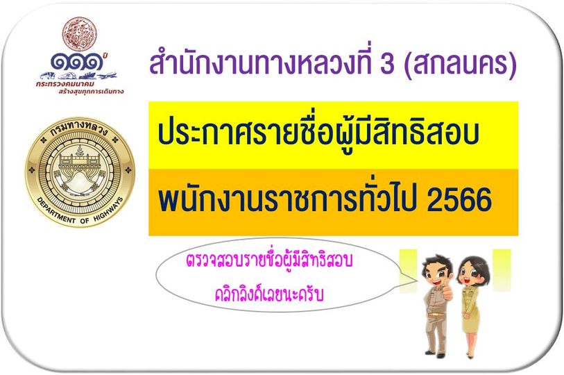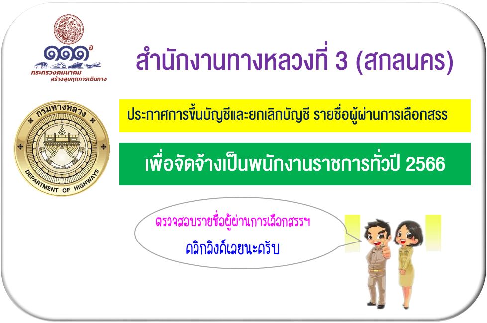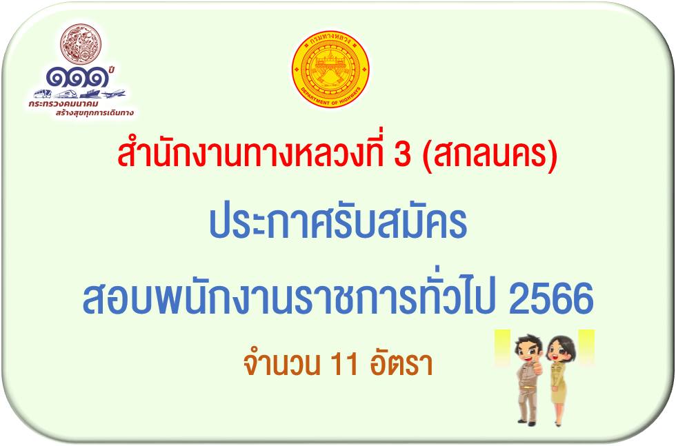 สำนักงานทางหลวงที่ 3 สกลนคร ประกาศรับสมัครสอบพนักงานราชการ 2566