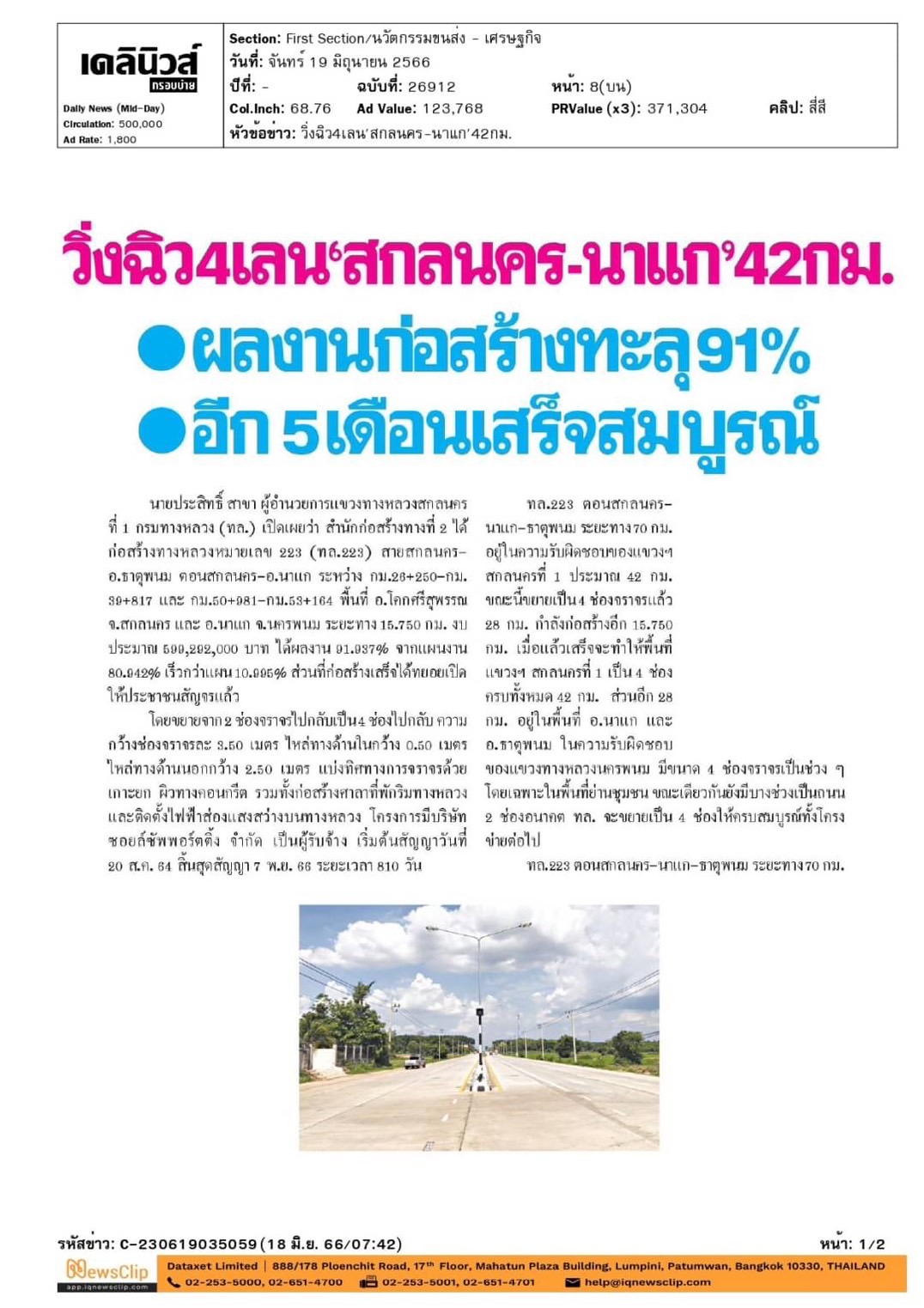 วิ่งฉิว4เลนสกลนคร-นาแก42กม. ผลงานก่อสร้างทะลุ91% อีก 5เดือนเสร็จสมบูรณ์