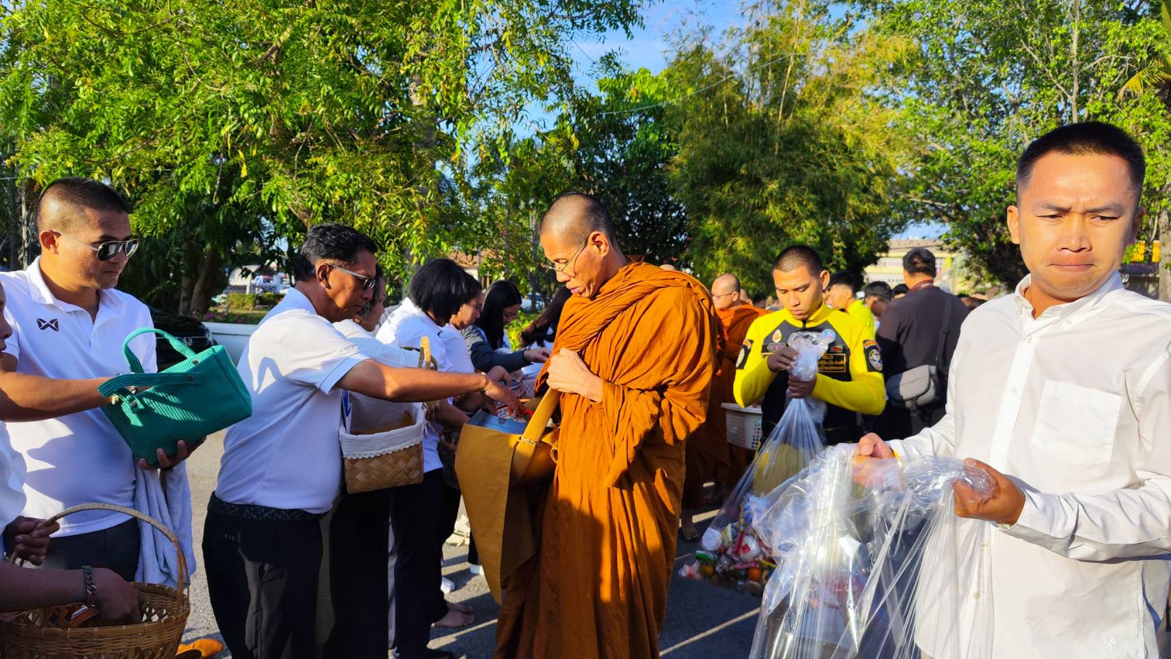 แขวงทางหลวงสกลนครที่ 1 จัดพิธีทำบุญตักบาตรสำนักงานฯ เพื่อสร้างขวัญกำลังใจในการปฏิบัติงานให้แก่ข้าราชการเเละเจ้าหน้าที่ในสังกัด ในการนี้ได้นิมนต์พระสงฆ์มาเจริญพระพุทธมนต์พรมน้ำมนต์ จำนวน 14 รูปดังนี้