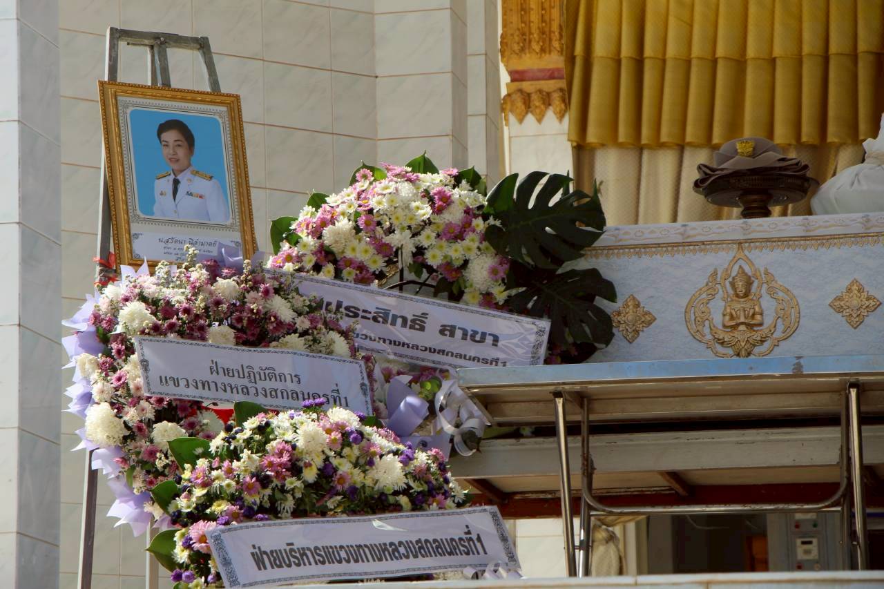 นาย ประสิทธิ์ สาขา ผู้อำนวยการเเขวงทางหลวงสกลนครที่ 1 เป็นประธานในพิธีฌาปนกิจศพ นางสาวรัตนา นิอำมาตย์ นักจัดการงานทั่วไปชำนาญการ หัวหน้างานการเงินเเละบัญชี เเขวงทางหลวงสกลนครที่ 1 ณ วัดป่าสันติธรรม ต.ธาตุเชิงชุม อ.เมือง จ.สกลนคร