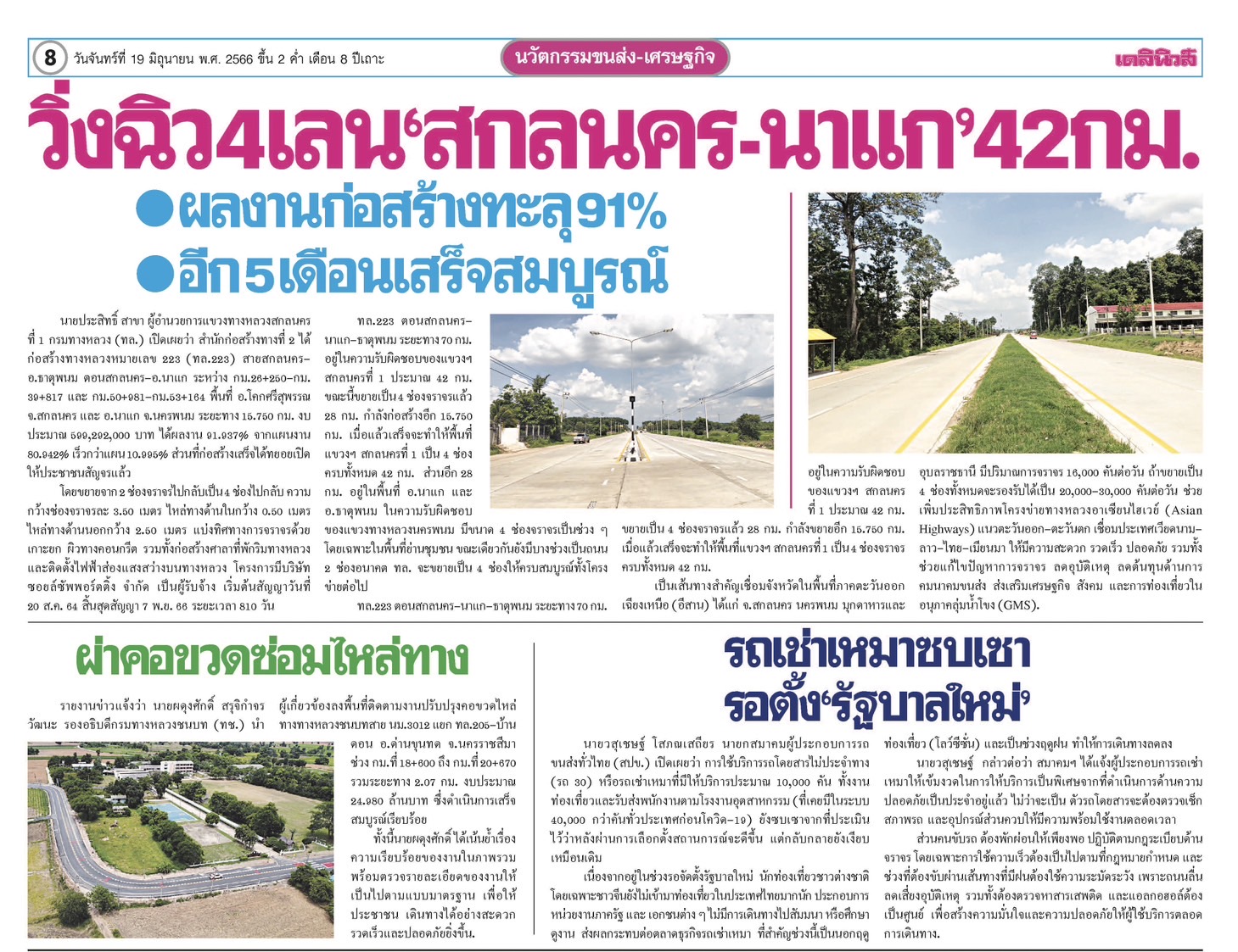 ข้อมูลข่าว : วิ่งฉิว4เลนสกลนคร-นาแก42กม. ผลงานก่อสร้างทะลุ91% อีก 5เดือนเสร็จสมบูรณ์